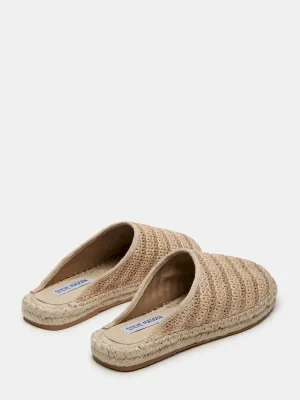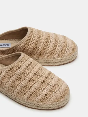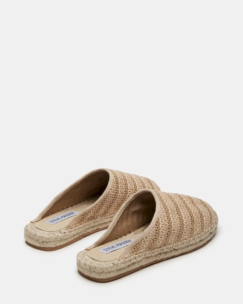 The GILLIGAN is a stylish and comfortable slip-on flat mule. Its rounded toe design adds a touch of elegance while the espadrille bottom offers durability and stability. Perfect for any occasion, these shoes are a must-have addition to your wardrobe.