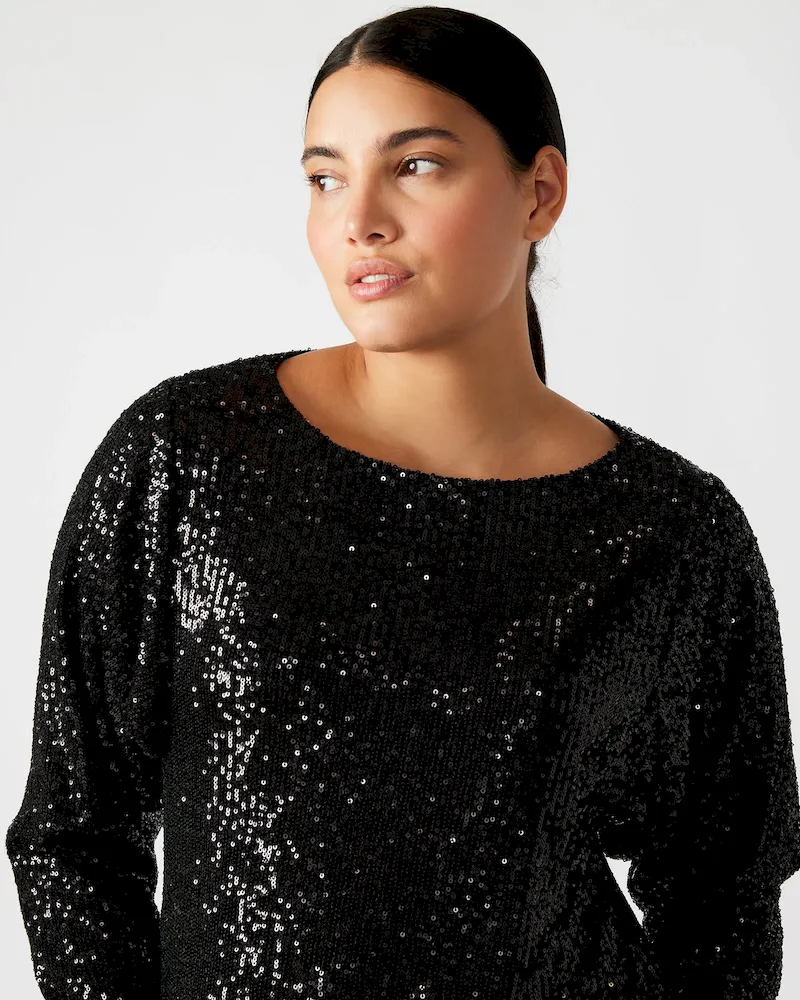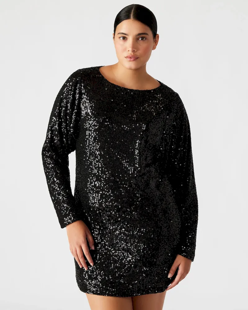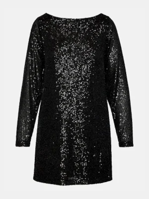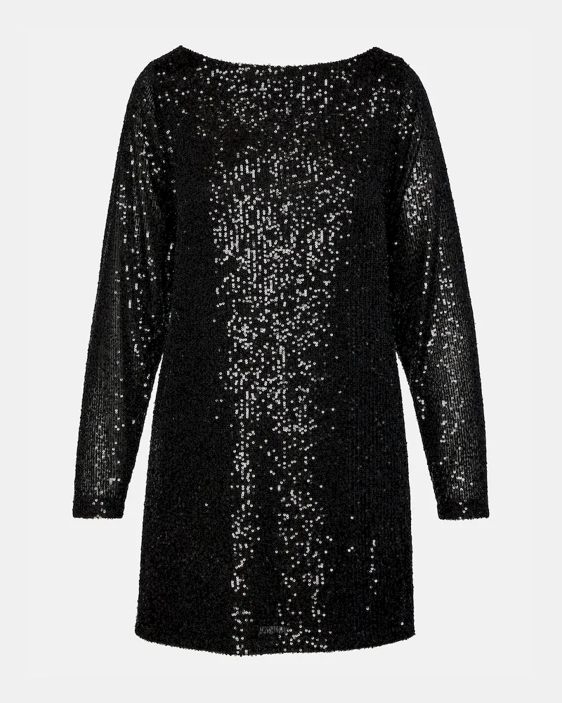 Enhance your wardrobe with the GINGER dress. This elegant dress features long sleeves and a sparkling sequin design, perfect for a night out. With its mini length, it will elongate your legs and add a touch of glamour to any occasion. Dress to impress in this eye-catching dress!