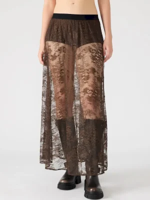 Elevate your wardrobe with the GISELA skirt, a maxi-length sheer lace skirt that combines elegance with modern sophistication. Crafted from delicate lace, it offers a lightweight, breathable feel while showcasing intricate patterns that add texture and depth.