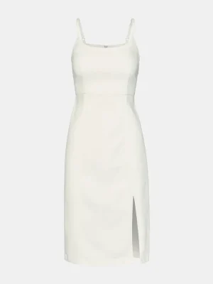 - Denim fitted midi dress with slit