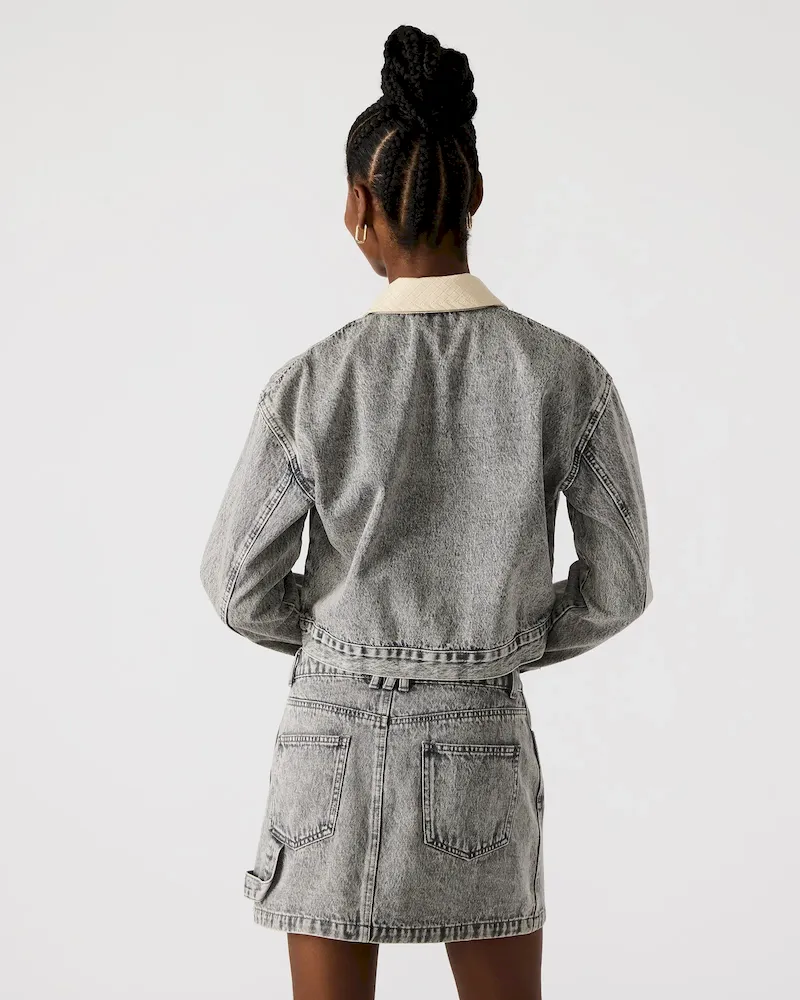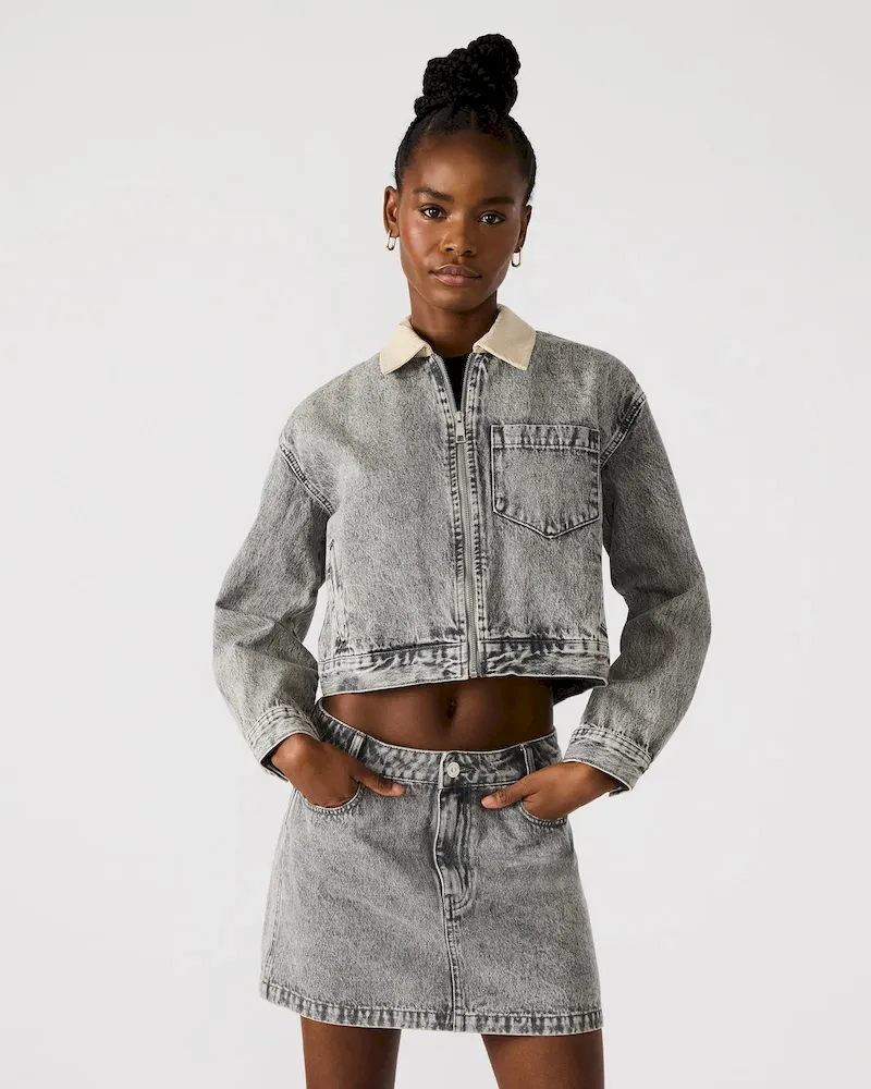 The GLACIA denim jacket is a versatile and stylish addition to any wardrobe. Made of durable denim with a collared design and front zipper closure, this long-sleeved jacket is perfect for a matching set look. Stay on trend and comfortable with this must-have piece.