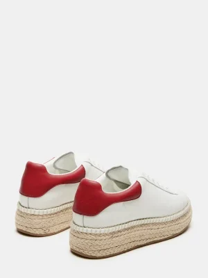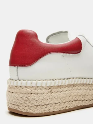 Step up your shoe game with GLANCE! These lace up sneakers are made with high-quality leather and feature an espadrille bottom for a unique touch. The color pop detail adds a playful element to your look. Perfect for adding some personality to any outfit!