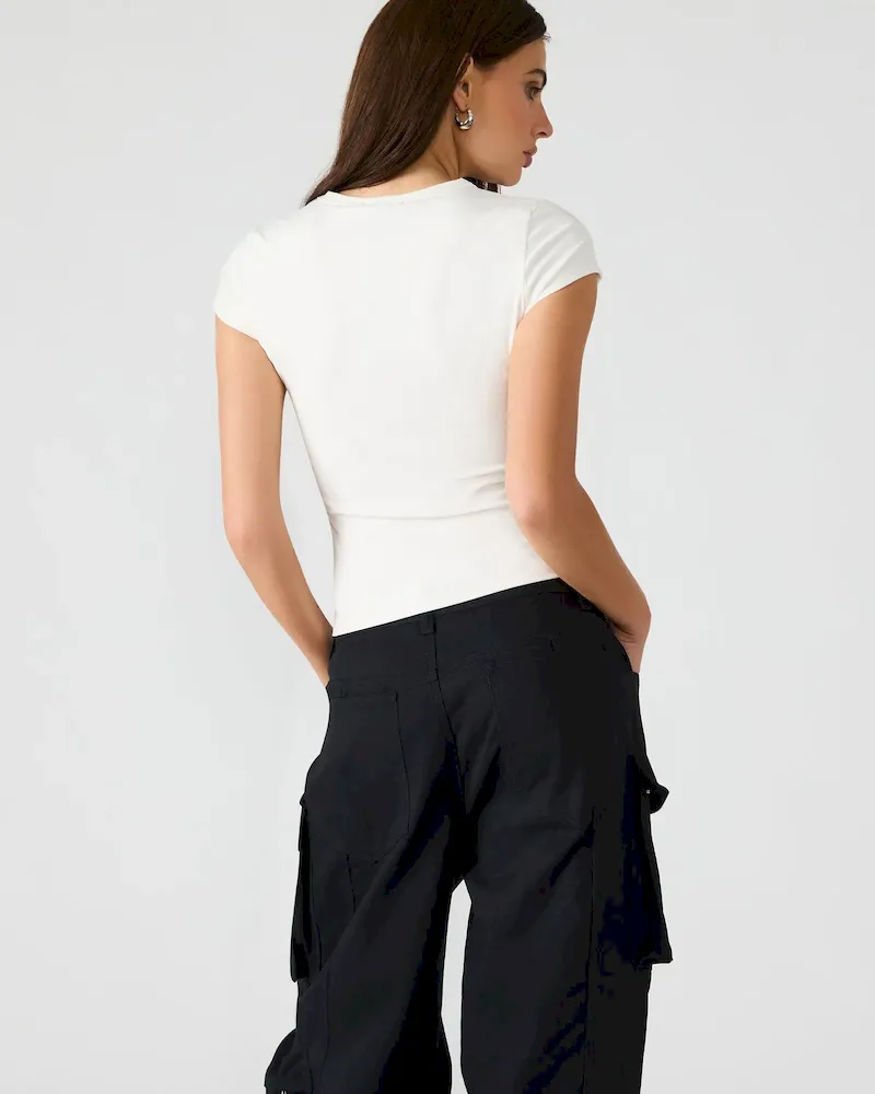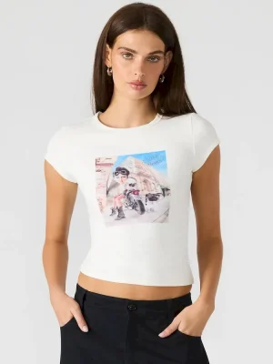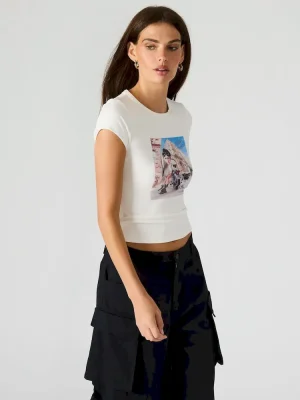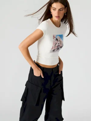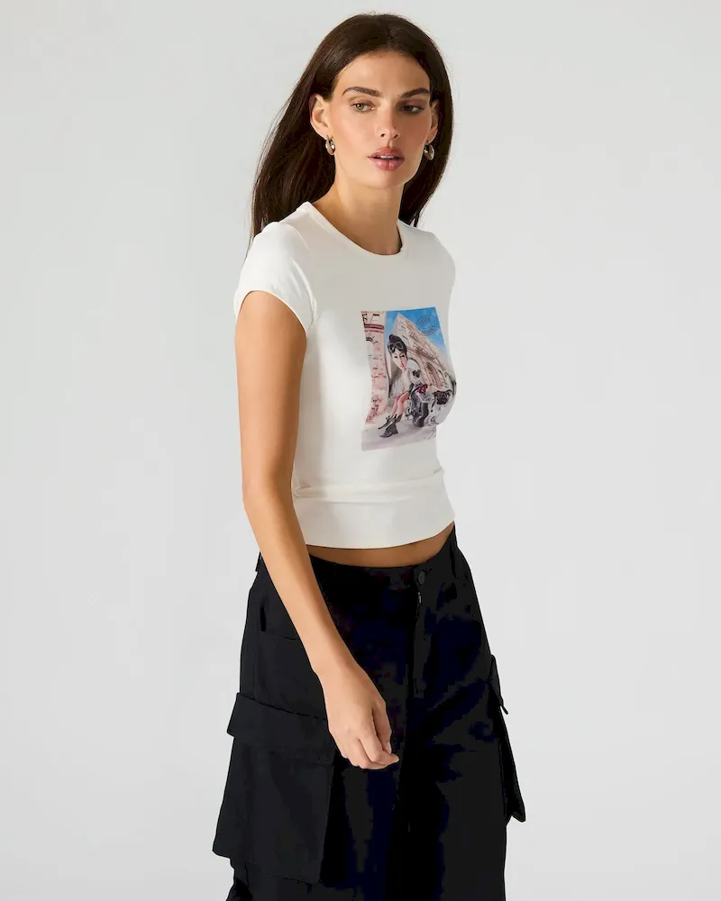 The GOLDIE TEE ANTIQUE, a form-fitting graphic top crafted to complement your silhouette with precision. Its tailored design ensures a flattering fit, making it ideal for layering or wearing solo. Expertly constructed, this piece combines style and comfort for a versatile, modern wardrobe staple.
