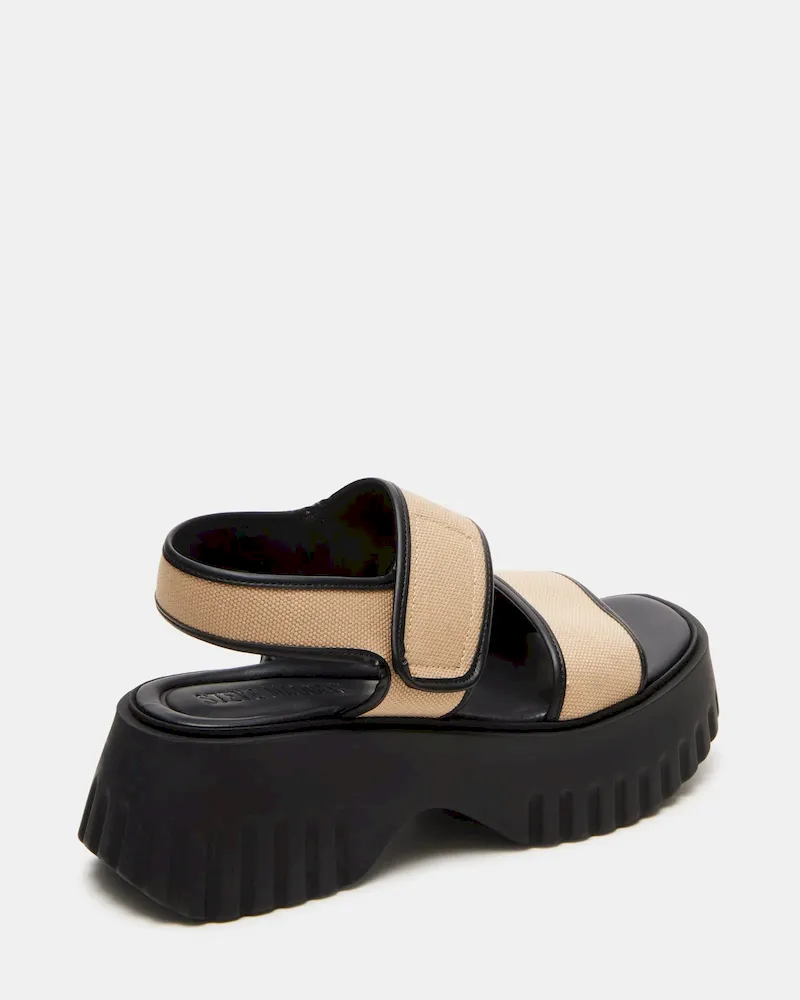 The GROVER platform sandal offers both style and comfort, expertly crafted in a versatile style and featuring a modern square-toe. Elevate any outfit with this sophisticated and on-trend shoe.