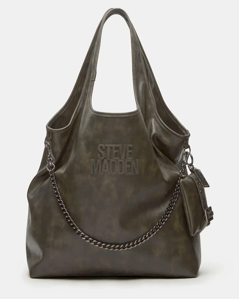 Expertly crafted, the GRUNGY bag features a soft, slouchy, large tote silhouette with sophisticated functionality. The detachable curb chain and zipper pouch charm add versatility, while the encrusted dog tag logo patch provides distinctive branding. Interior organization compartments accommodate a large laptop with ease. The monochrome self-logo detailing completes this practical yet fashion-forward accessory.