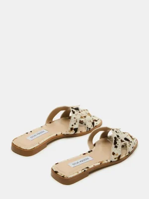 Geometric cutouts on the wide single strap of the HADYN slide give this flat sandal design a fresh feel.