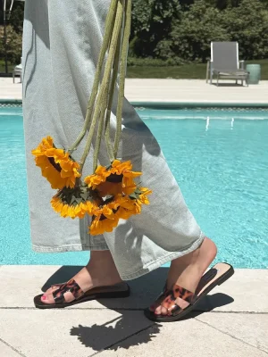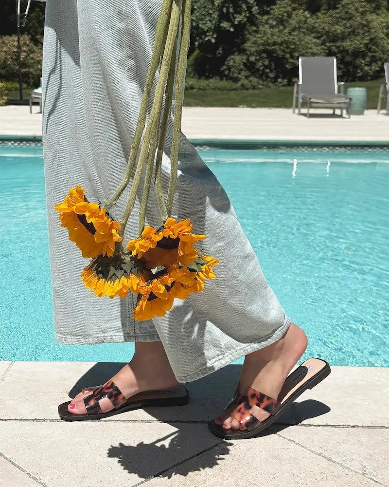 Geometric cutouts on the wide single strap of the HADYN slide give this flat sandal design a fresh feel.