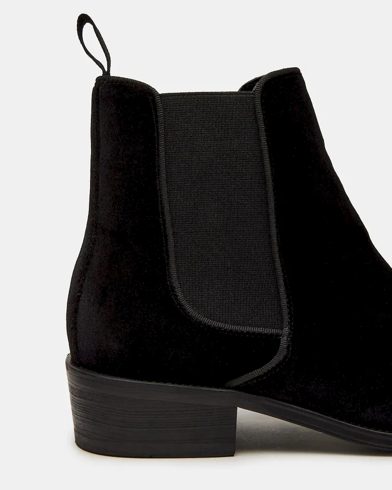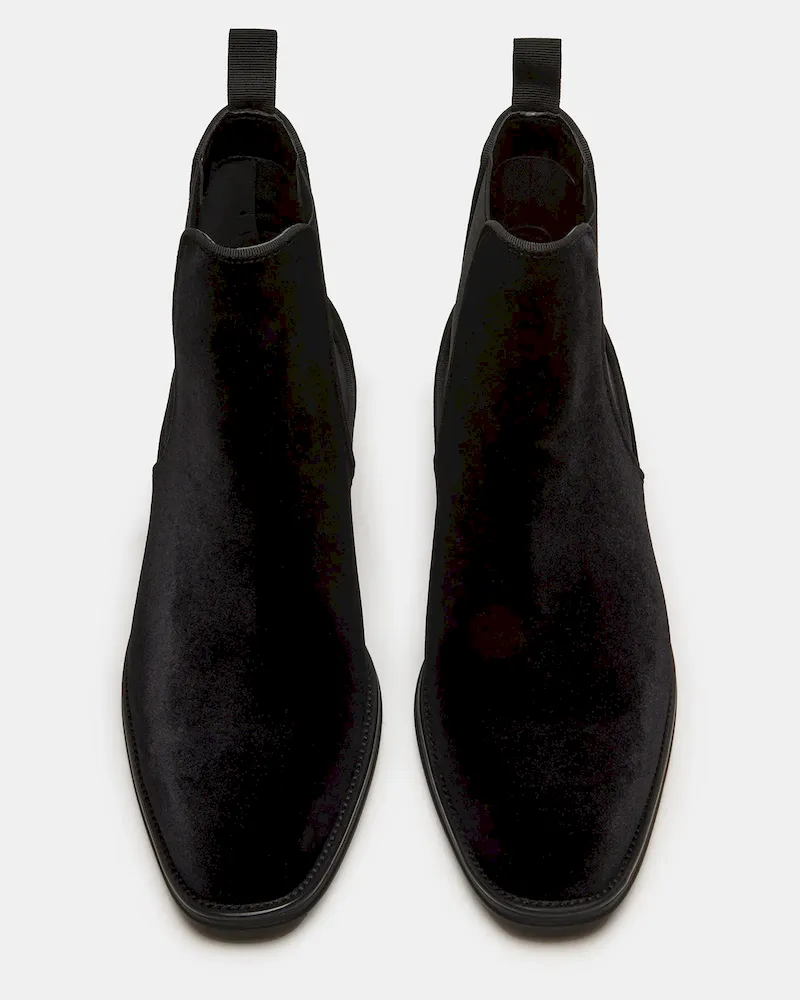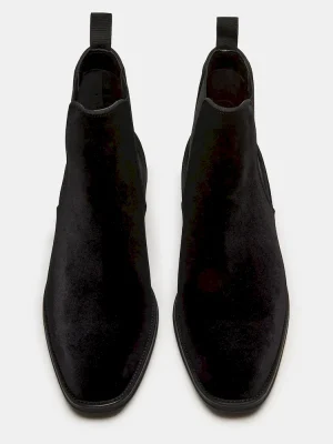 Expertly crafted with a plush velvet upper, the HAMLIN chelsea boot offers effortless style and comfort. Featuring pull-on closure with elastic core insets and a convenient pull tab on the heel, these boots are perfect for easy on and off. Elevate your wardrobe with this must-have staple.