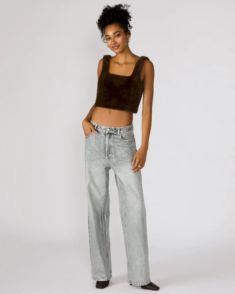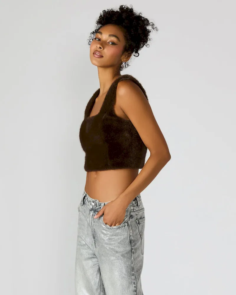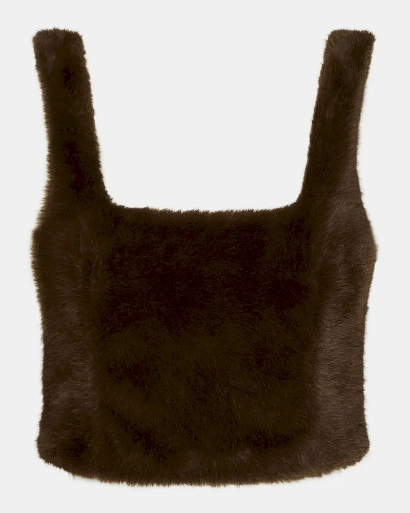 Elevate your winter wardrobe with the HANNIA FAUX FUR TOP DARK ESPRESSO. Crafted for warmth and style, this cropped top features a luxurious faux fur texture and a convenient back zip closure for a sleek fit. Ideal for layering or statement looks, it combines sophistication with comfort for effortless seasonal fashion.