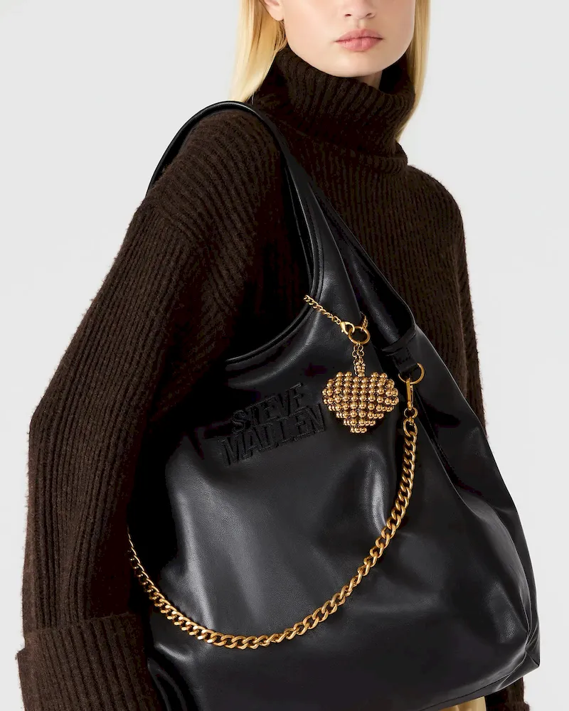Add a touch of elegance to your bag with our HEART BAG CHARM. The heart-shaped charm features a curb chain, jewelry-like closure, split key ring, and link logo tag. It is perfect for fashion-forward individuals looking to add a sophisticated touch to their everyday accessories.