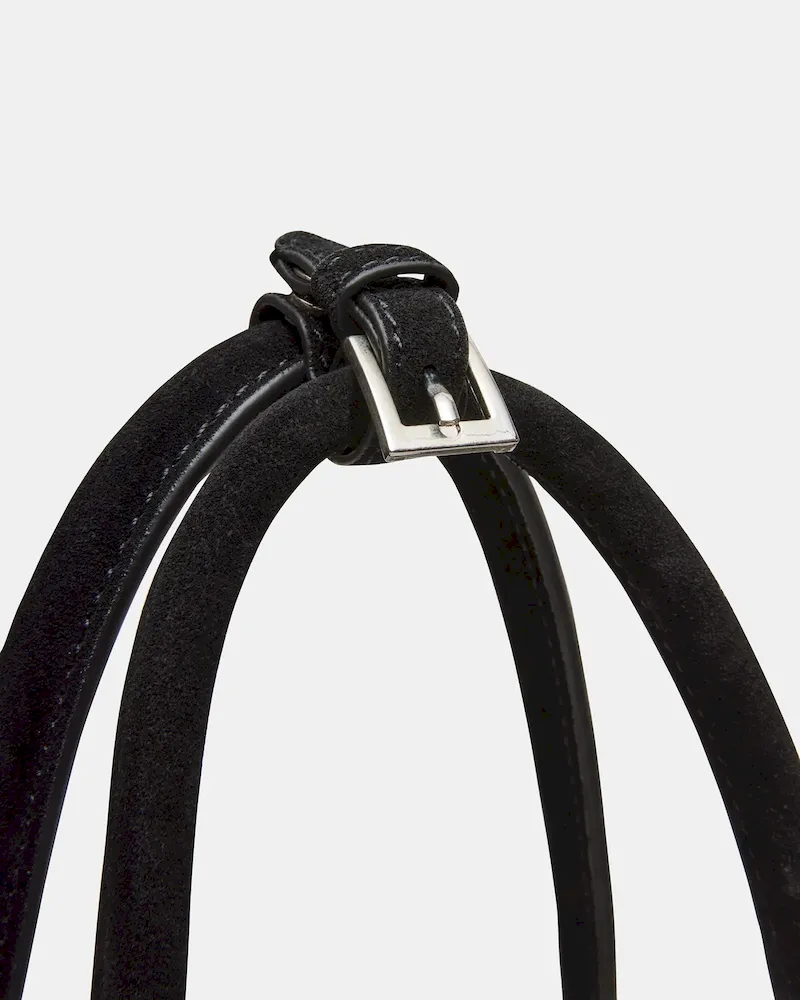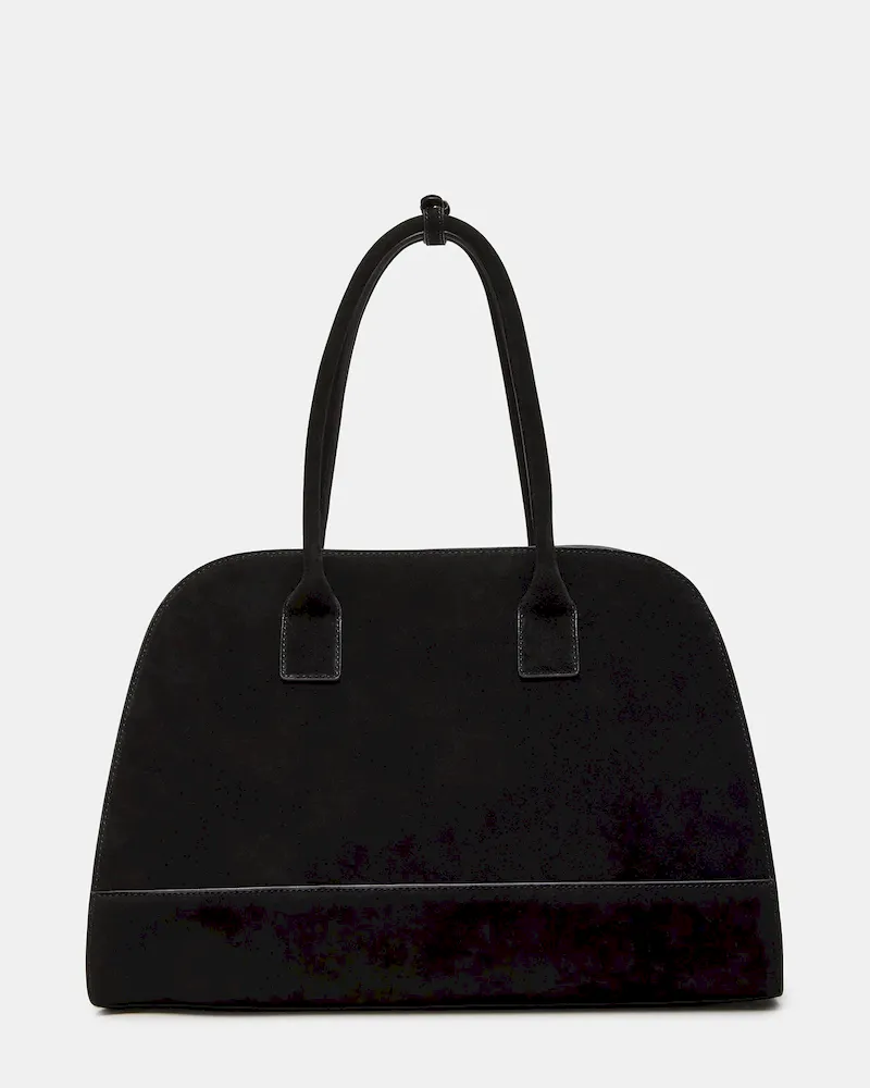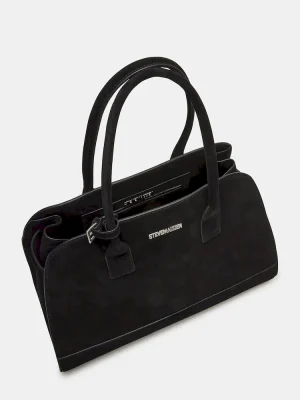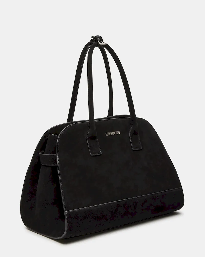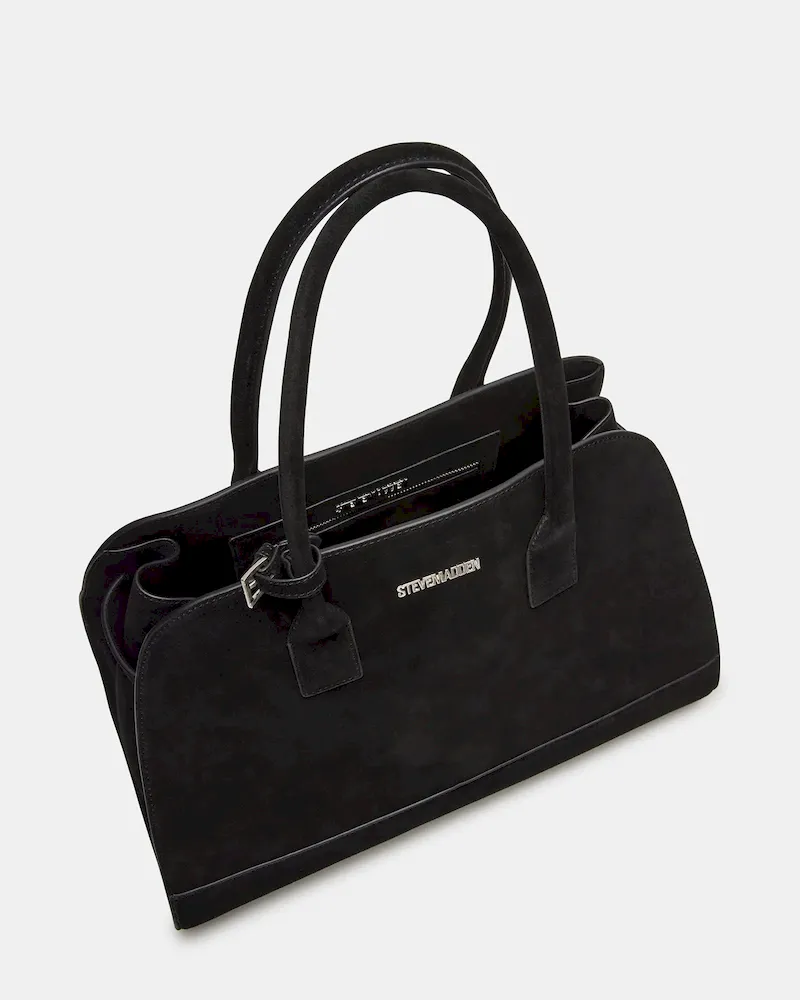 The HEIDEE bag is the ultimate everyday shoulder bag tote. Made with suede materials, it features an inside zip pouch for secure storage, a convenient snap button closure, and stylish buckle detail on the shoulder straps. Stay organized and look fashionable with this must-have accessory.
