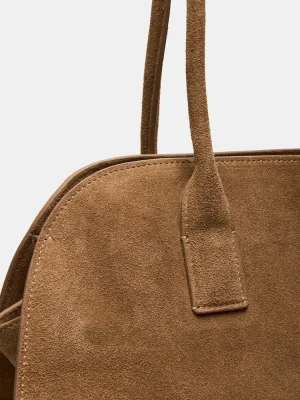 The HEIDEE bag is the ultimate everyday shoulder bag tote. Made with suede materials, it features an inside zip pouch for secure storage, a convenient snap button closure, and stylish buckle detail on the shoulder straps. Stay organized and look fashionable with this must-have accessory.