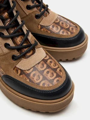 The HIKER lug lace-up ankle boot combines rugged durability with modern style. Featuring a sturdy lug sole for enhanced traction and a secure lace-up design, this bootie offers reliable support and comfort for urban adventures or outdoor excursions. Its versatile finish adds a refined touch to any outfit while ensuring lasting wear. Ideal for those seeking both functionality and fashion in a compact ankle boot.