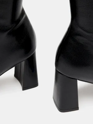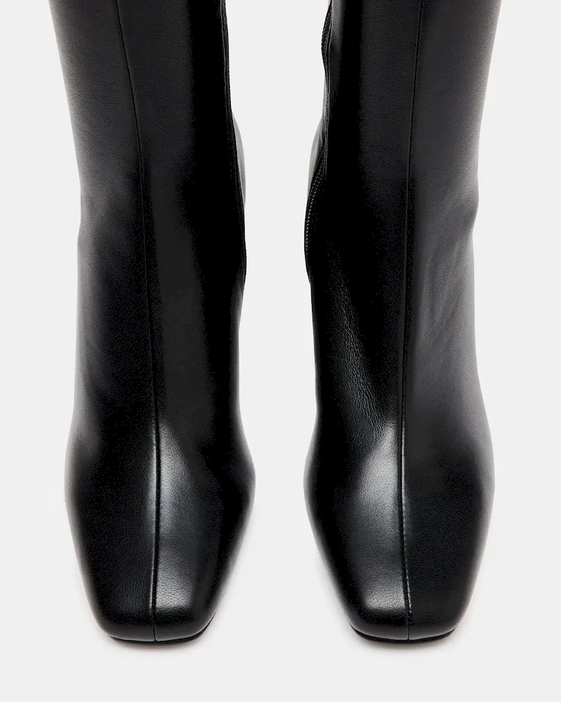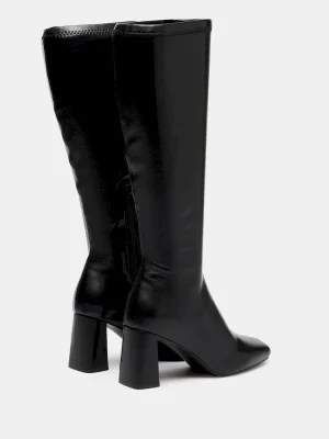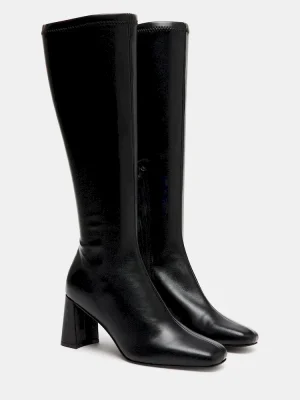 A half-zipper closure gives the HOLLY knee boot a calf-defining fit while an angled block heel and a square-toe giving this style a sharp finish.