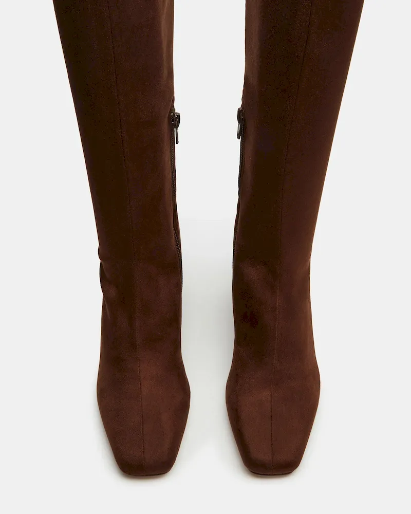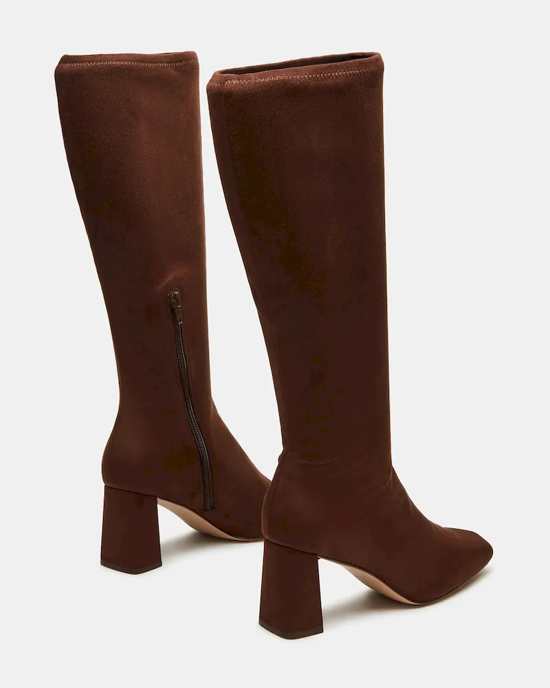 A half-zipper closure gives the HOLLY knee boot a calf-defining fit while an angled block heel and a square-toe giving this style a sharp finish.
