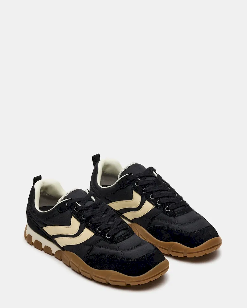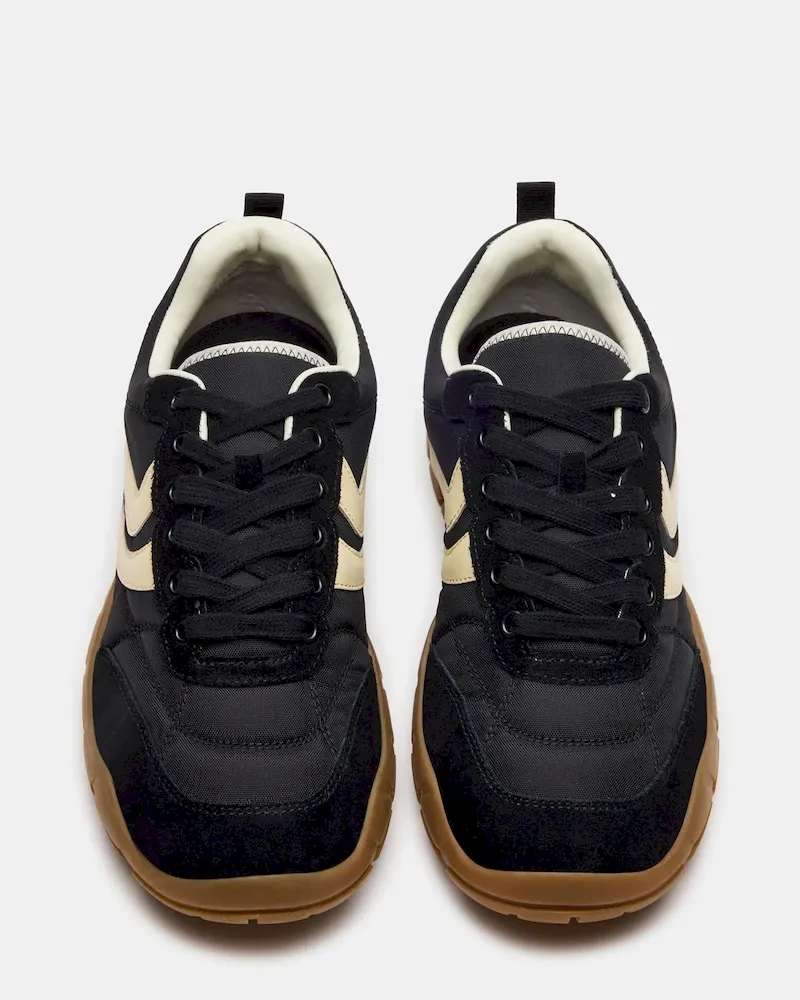The HORIZON BLACK low-top lace-up sneaker offers a sleek, minimalist design crafted for everyday wear. Its streamlined silhouette provides a comfortable fit, while durable materials ensure long-lasting performance. Ideal for those seeking versatile footwear that combines style and function effortlessly.