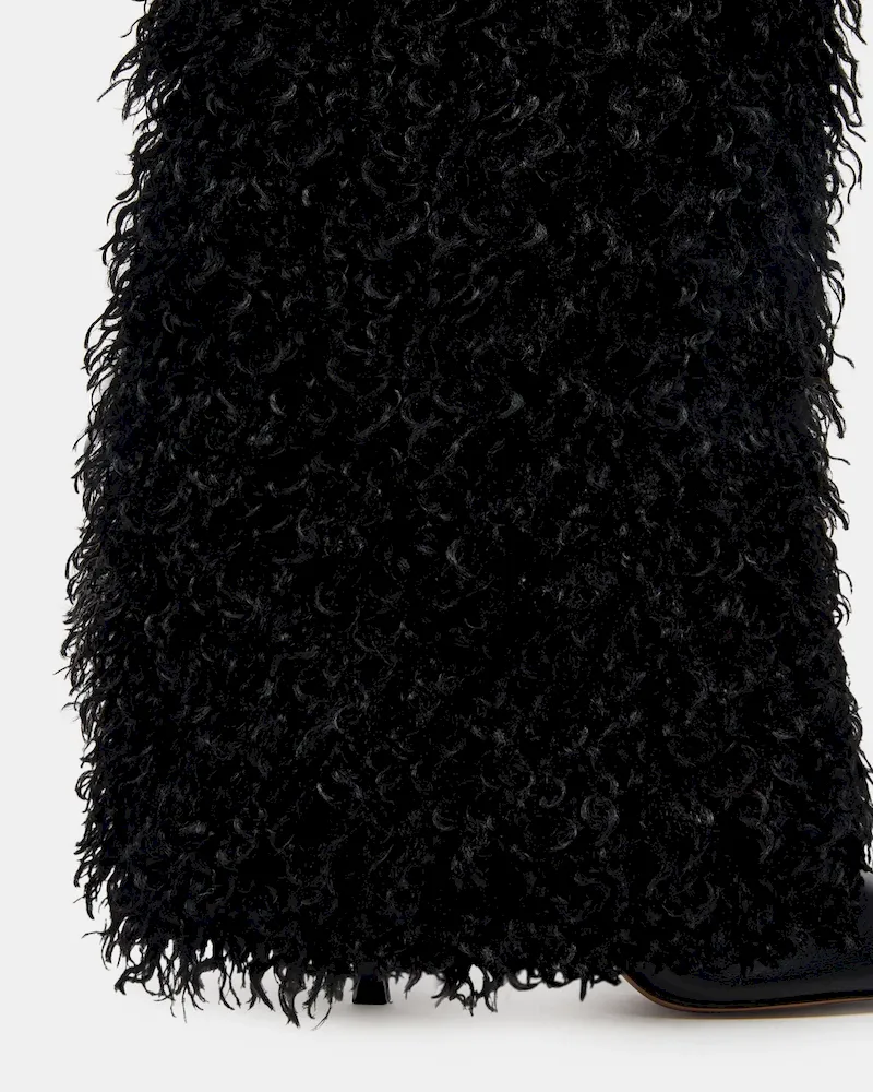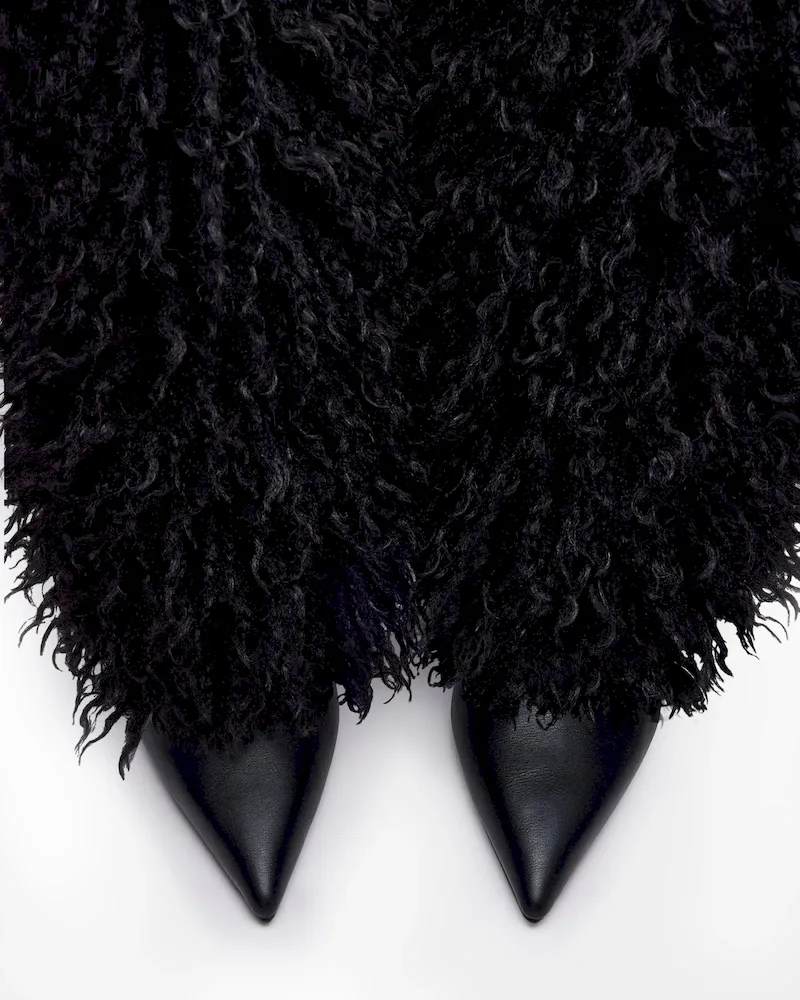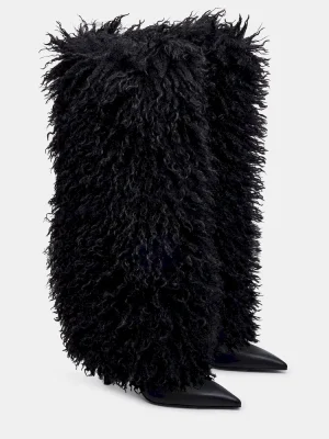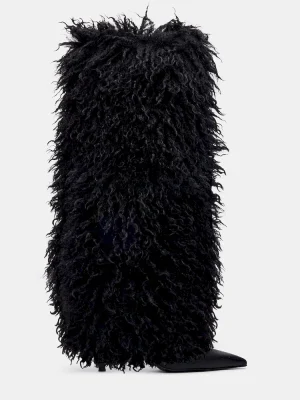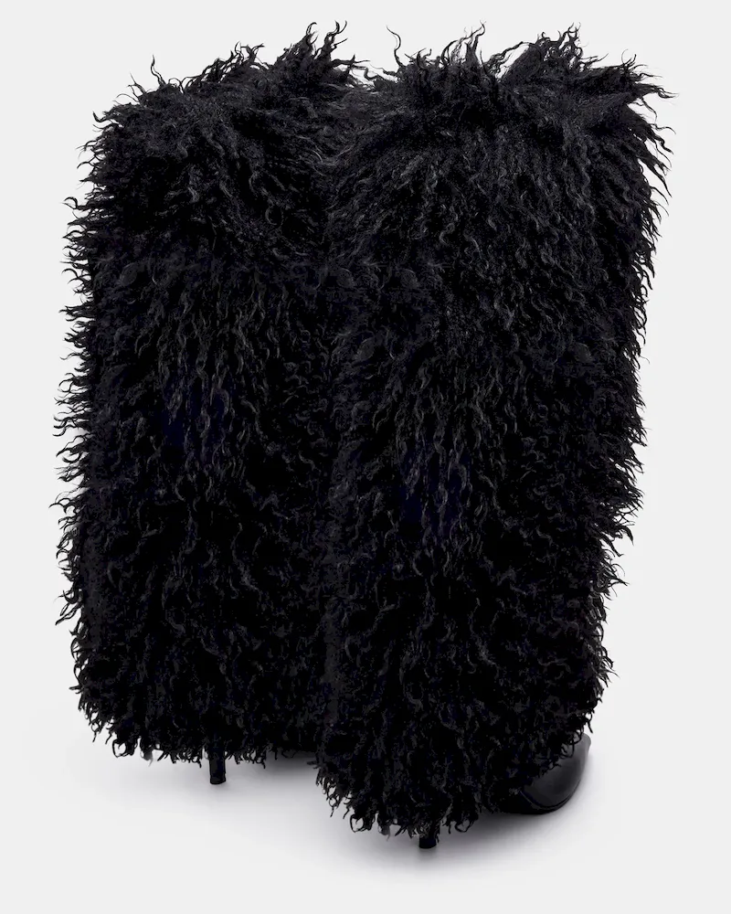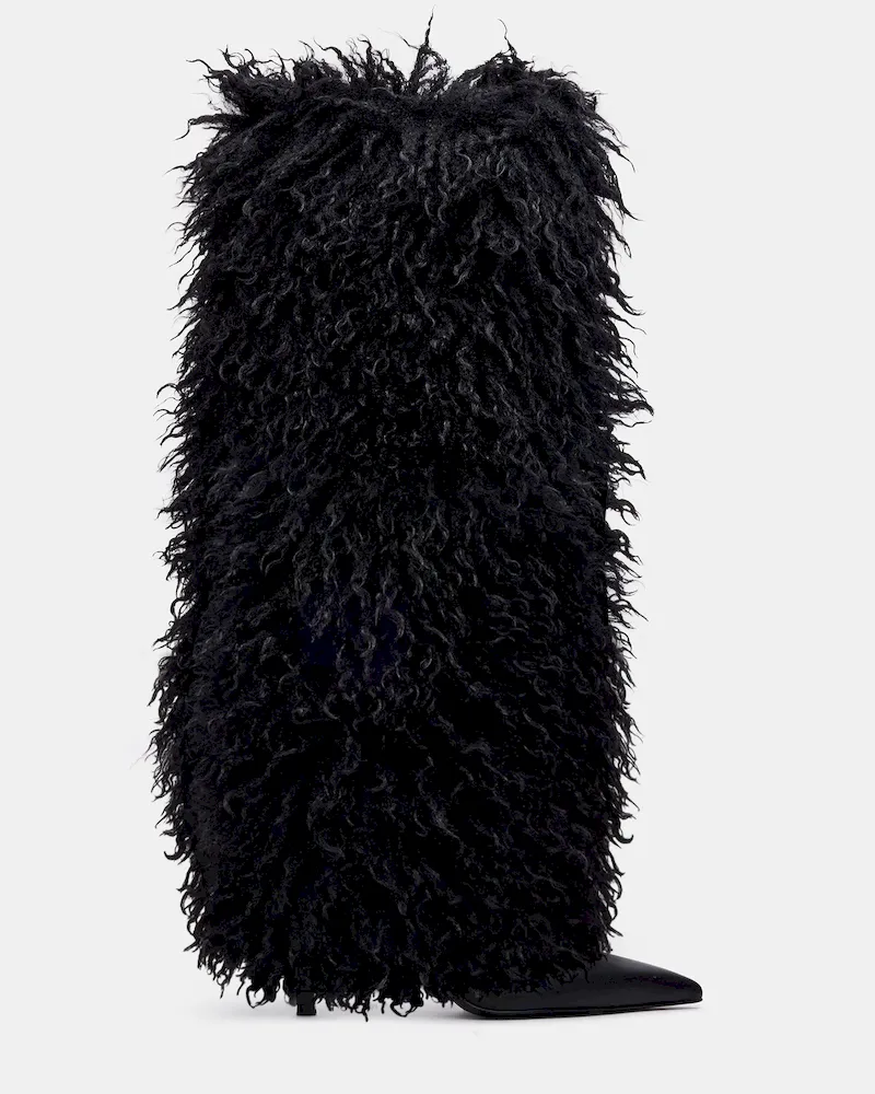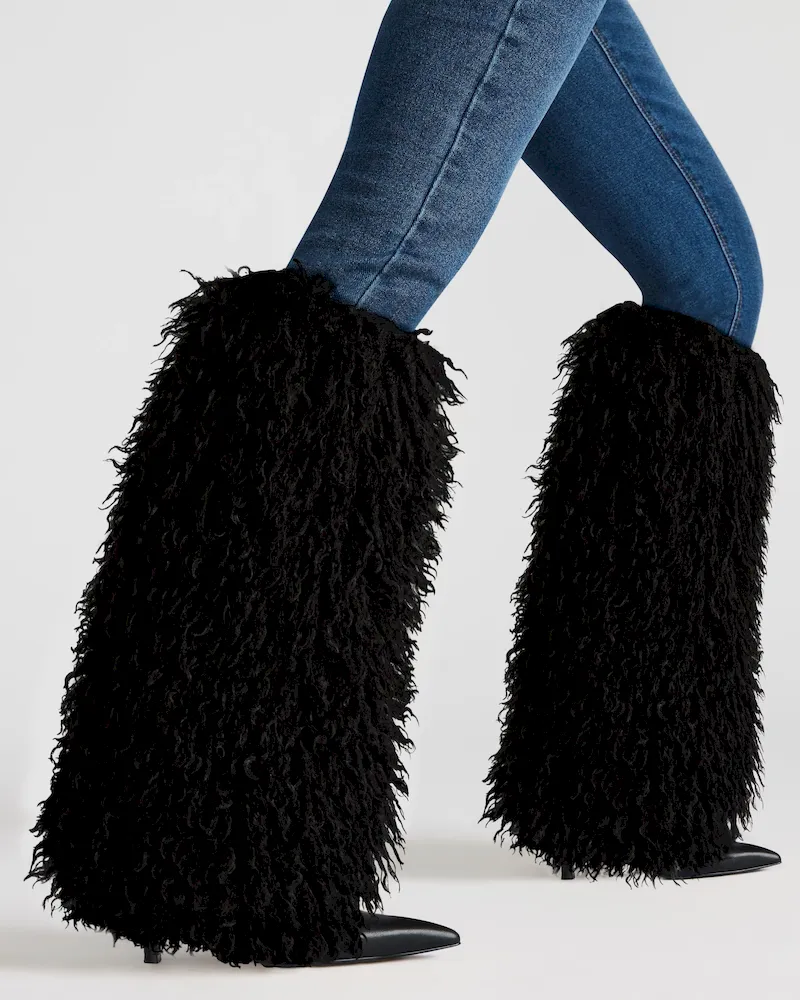 Experience sleek and edgy style with ICON. With a heeled stiletto and fold-over faux fur cuff, these knee-high boots are perfect for adding a touch of glam to any outfit. The pointed-toe design adds a chic touch, making these boots a must-have for any fashion-forward shoe lover.