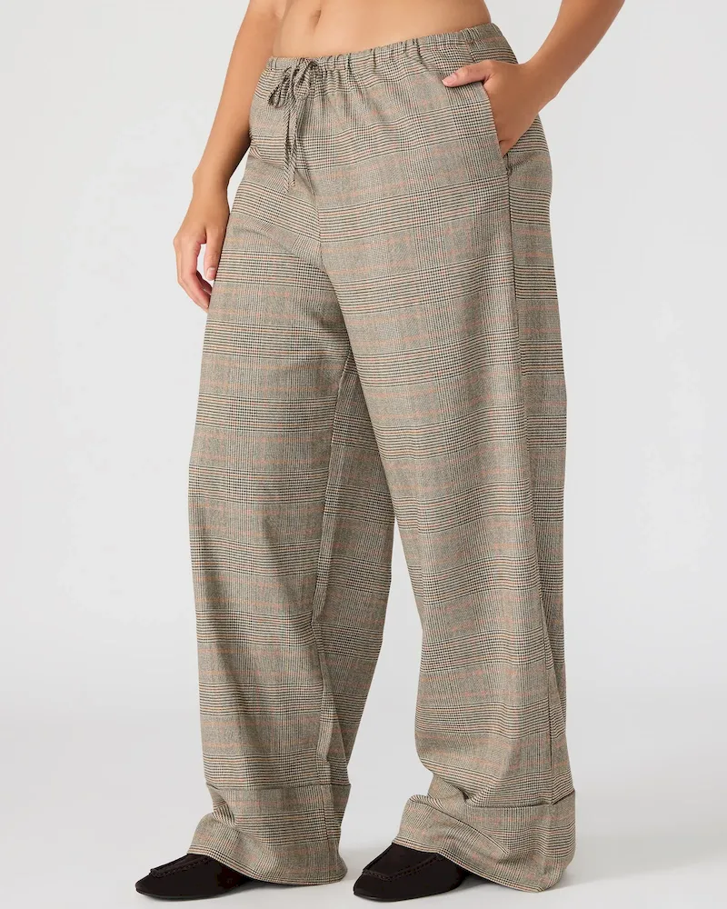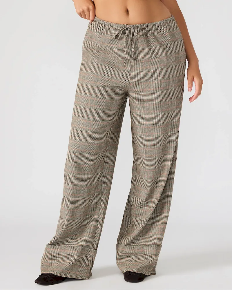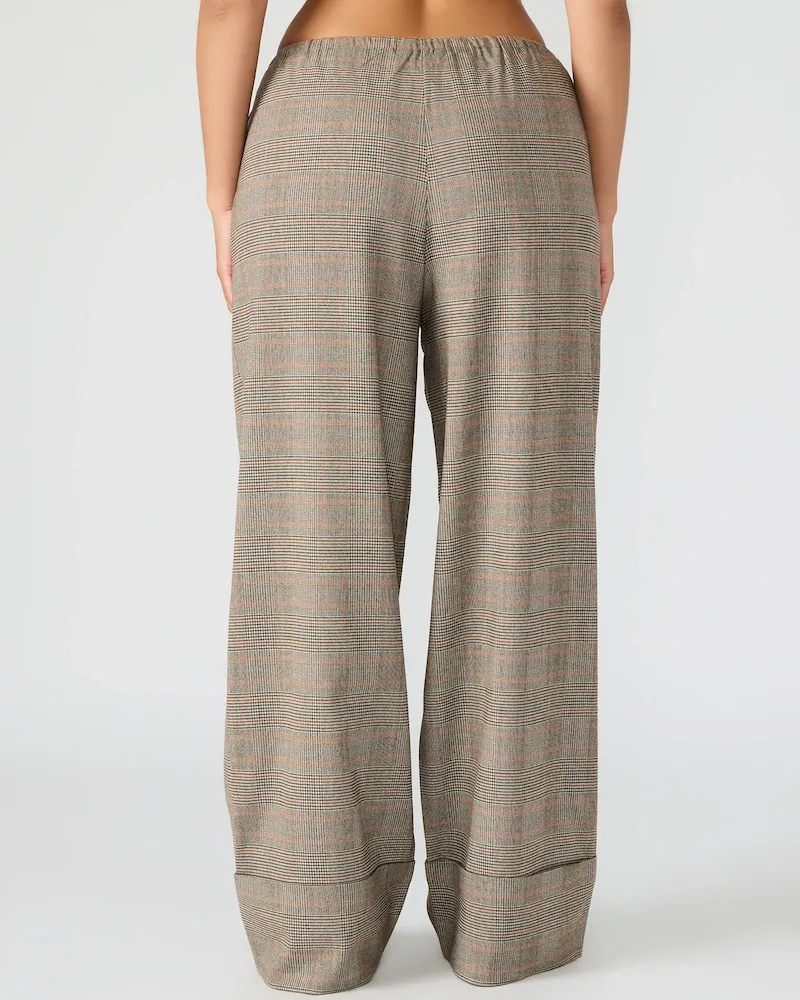 These IDRA pull-on plaid pants feature a sophisticated tie-front closure for an adjustable fit and a tailored cuff at the bottom, combining comfort with refined style. Ideal for versatile wear, they offer ease of movement while maintaining a polished silhouette.