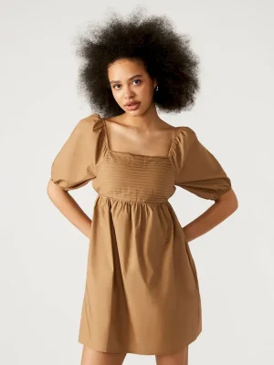 - Mini dress with elastic puff sleeves