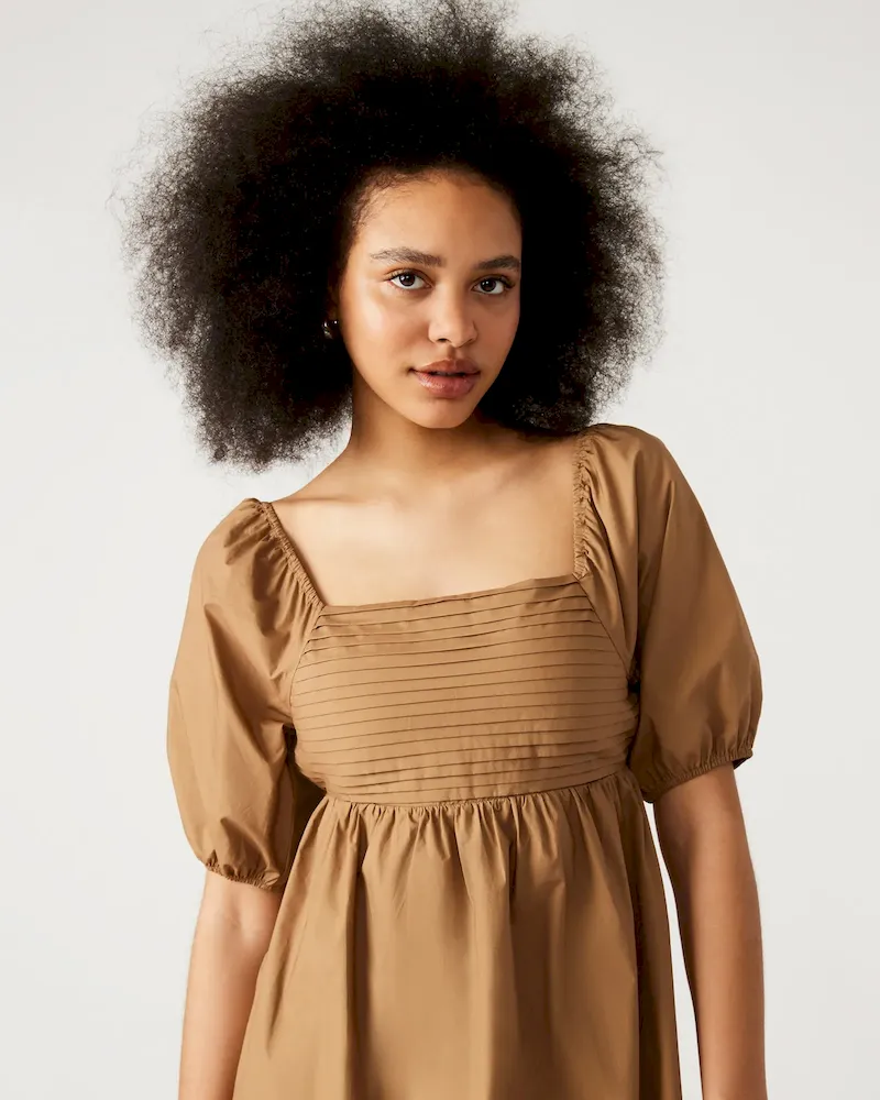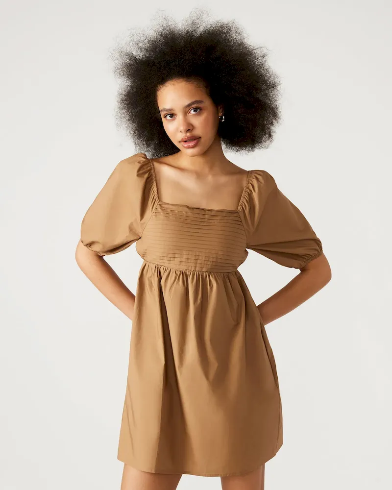 The INARA dress offers a feminine and elegant style. With short puff sleeves, a ruffle and flounce detail, and a flattering square neckline, this mini cocktail dress will make you stand out for any occasion. Elevate your wardrobe with this must-have dress.