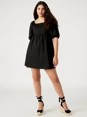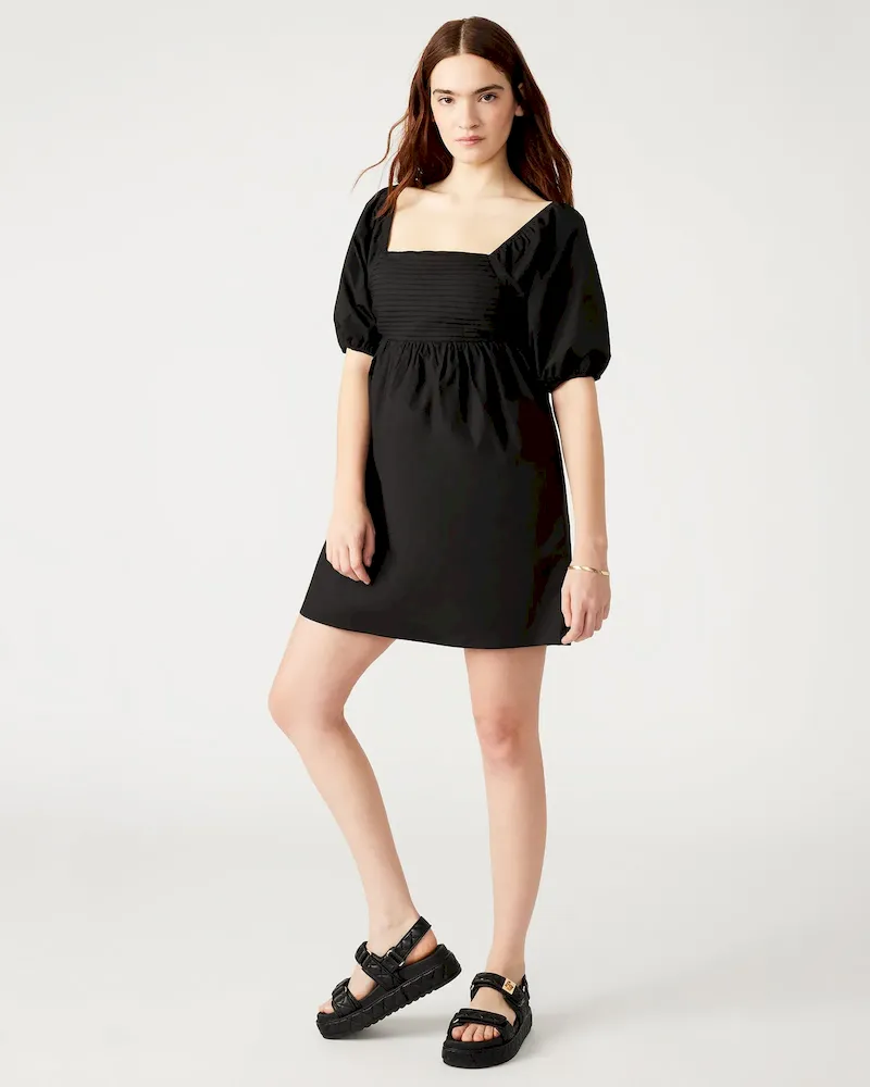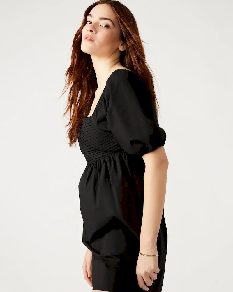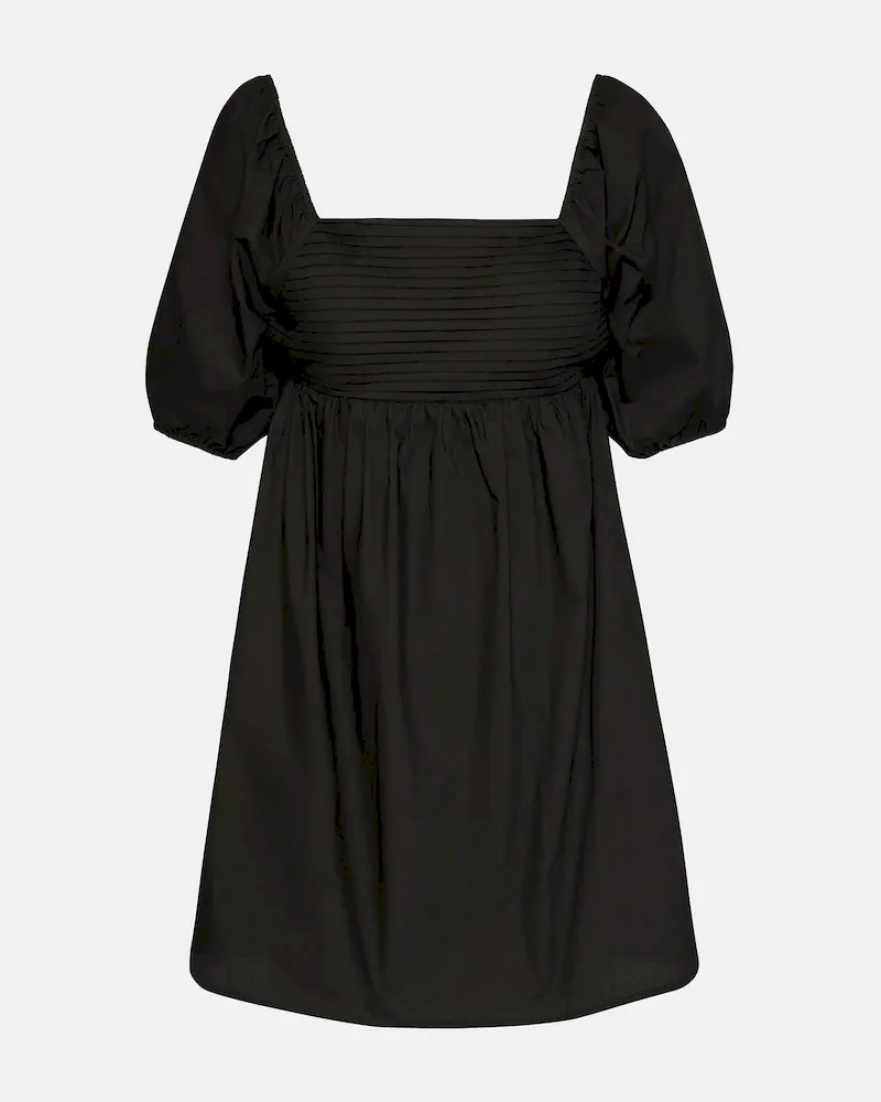 The INARA dress offers a feminine and elegant style. With short puff sleeves, a ruffle and flounce detail, and a flattering square neckline, this mini cocktail dress will make you stand out for any occasion. Elevate your wardrobe with this must-have dress.