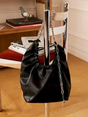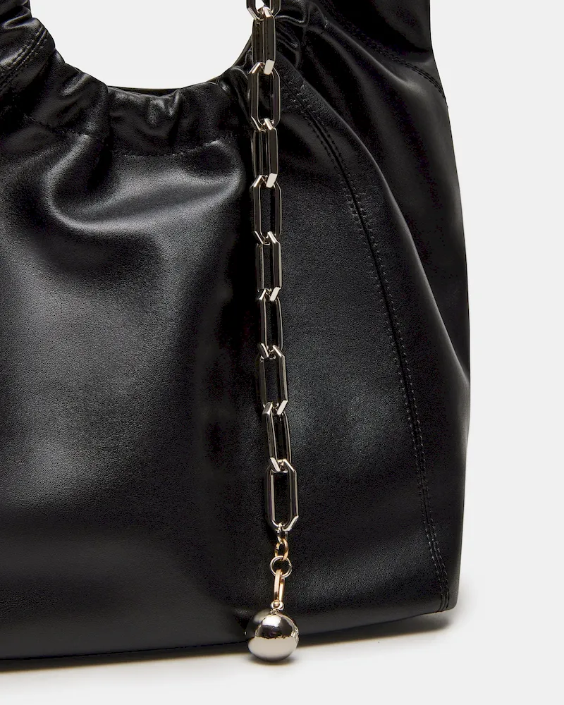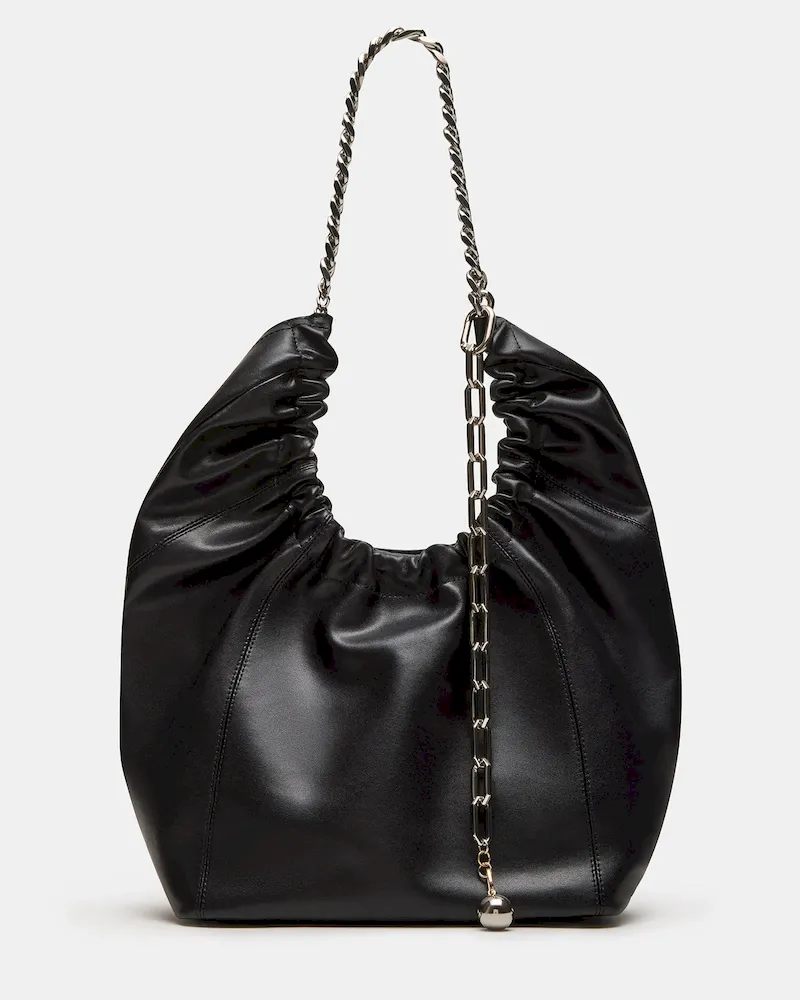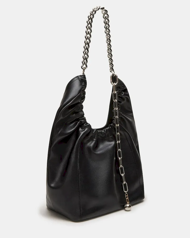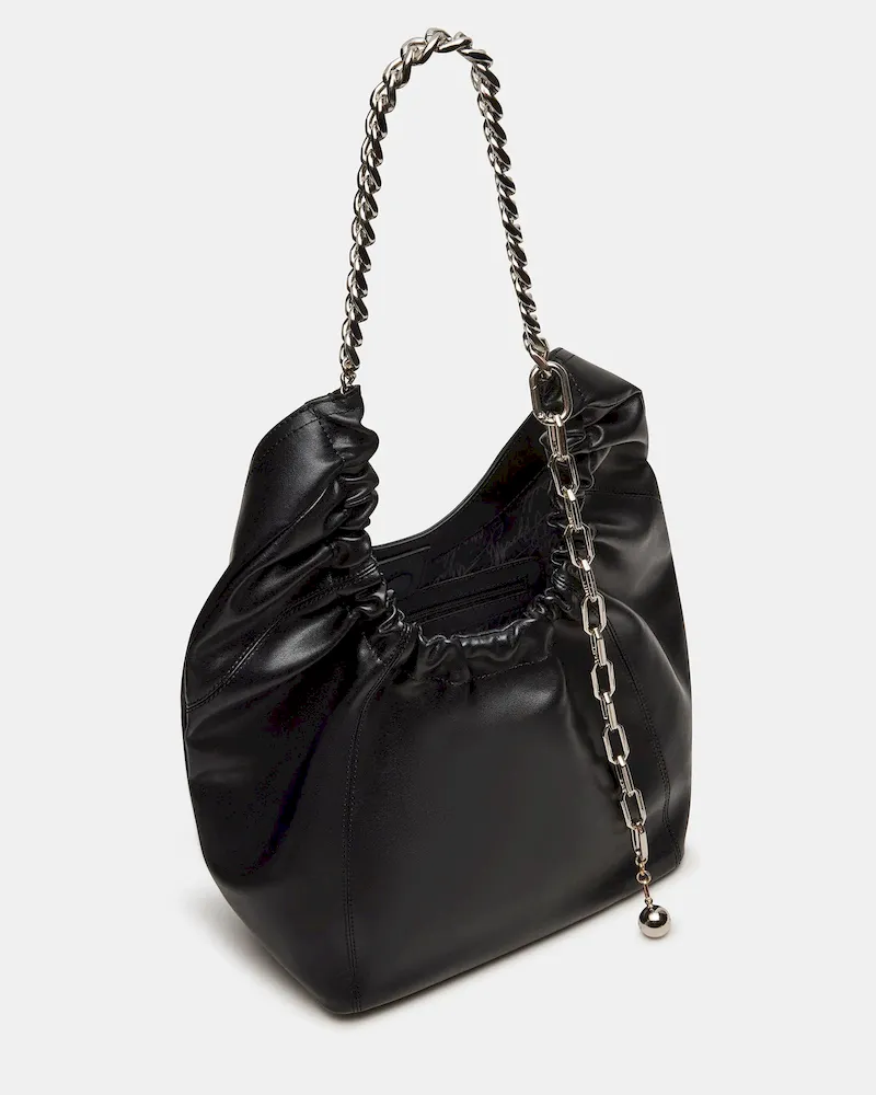 Take on the day with the JASON bag. Featuring a soft hobo-ruched design, a durable chain shoulder strap, and a long chain dangle for added style. The mag snap closure tab keeps your items secure while the spacious yet lightweight design allows for effortless carrying. Go bold with this versatile handbag!