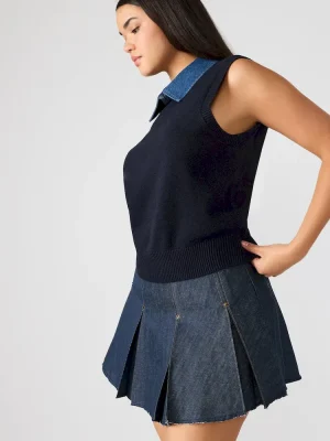 Elevate your layering game with the JEANE sweater vest top. Crafted for versatility, this sweater vest offers a refined knit texture and a multi-tone design that seamlessly complements both casual and polished outfits. It’s tailored fit ensures comfort while adding a sophisticated dimension to your wardrobe essentials. Ideal for transitional weather, it pairs effortlessly with shirts or blouses for a modern, expert-curated look.