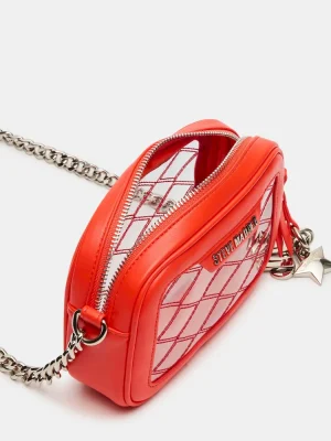 The JELLY bag is a fashionable and functional clear camera crossbody bag that will keep your essentials secure with its top zip closure. Its textured shimmery design and matte hardware add a touch of sophistication, while the quilt stitching detail adds a stylish and trendy element. This bag is the perfect choice for a gameday or concert, as it meets all stadium requirements and comes with an adjustable crossbody strap for added versatility.