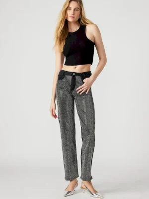 - Embellished straight leg jeans