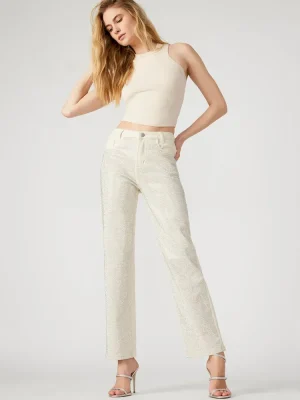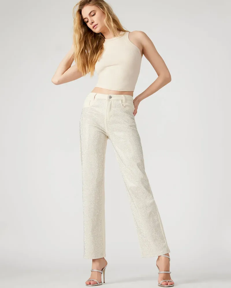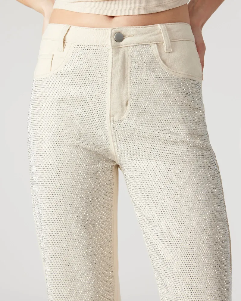 - Embellished straight leg jeans
