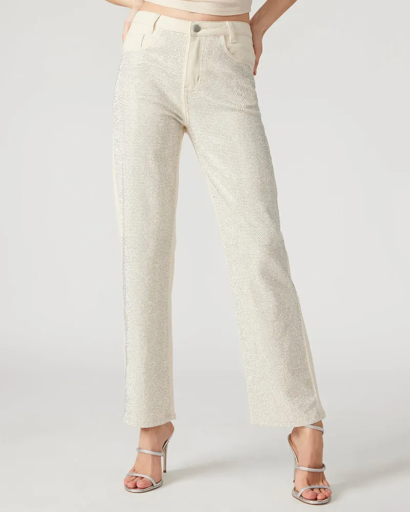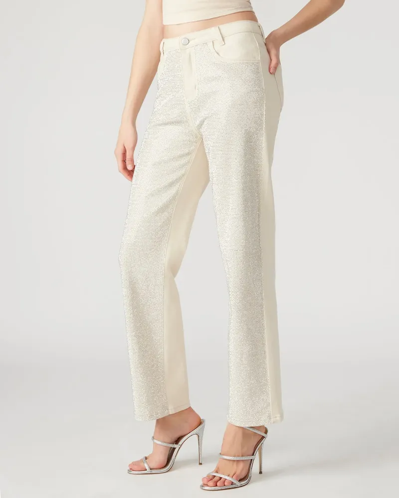 The JESSE jeans are the perfect embellished straight leg jeans, adorned with stunning rhinestones on the front. Elevate your style with this unique and eye-catching pant, perfect for making a statement.