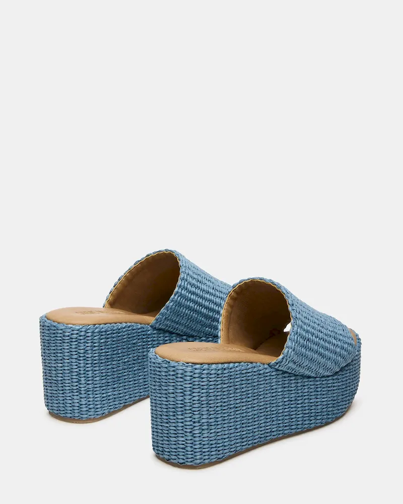 The JETTY platform wedge sandal combines raffia craftsmanship with a sleek mule silhouette, offering elevated comfort and effortless style. Its sturdy wedge heel provides stability and height, making it ideal for warm-weather occasions where both fashion and function matter. Perfect for adding a refined, summery touch to your wardrobe.