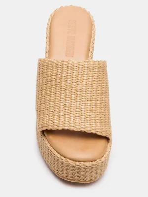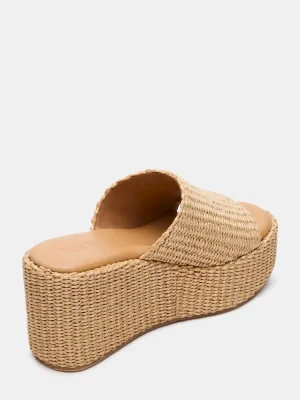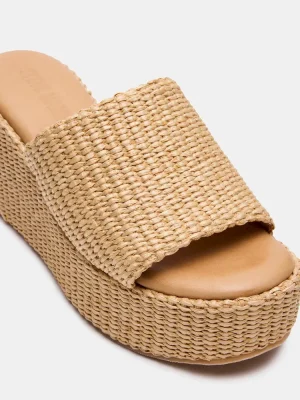 The JETTY platform wedge sandal combines raffia craftsmanship with a sleek mule silhouette, offering elevated comfort and effortless style. Its sturdy wedge heel provides stability and height, making it ideal for warm-weather occasions where both fashion and function matter. Perfect for adding a refined, summery touch to your wardrobe.