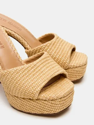 The JOEL NATURAL RAFFIA combines a modern square-toe with a sturdy platform mule heel, crafted from raffia for a textured, artisanal finish. This design offers both style and stability, making it an elegant choice for elevated comfort and sophisticated summer looks.