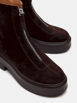 Experience style and comfort with the JONES ankle boot. The sleek design and front zipper detail add a touch of modernity to any outfit. Made with durable suede, these ankle booties are perfect for everyday wear.