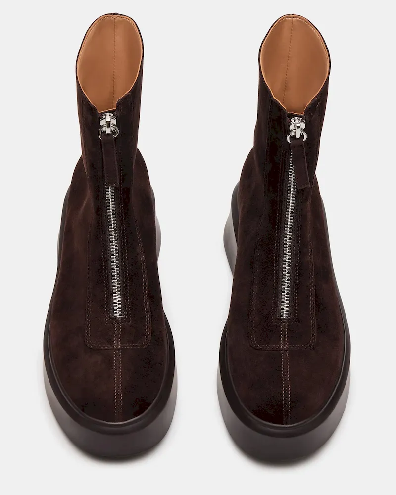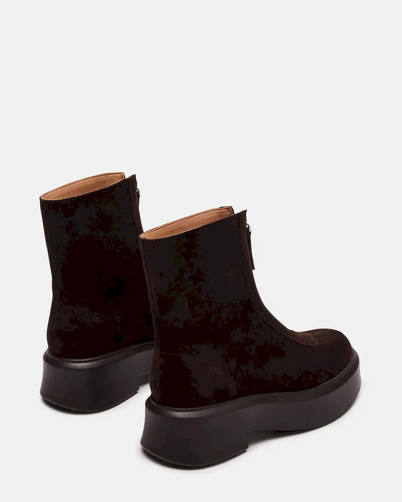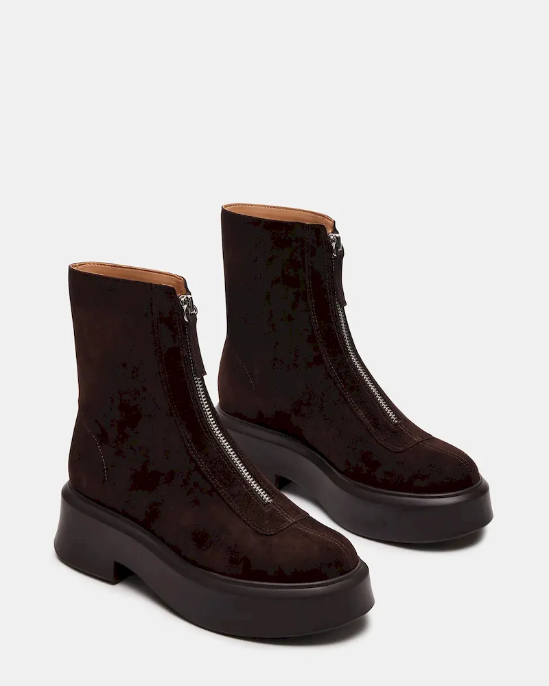 Experience style and comfort with the JONES ankle boot. The sleek design and front zipper detail add a touch of modernity to any outfit. Made with durable suede, these ankle booties are perfect for everyday wear.