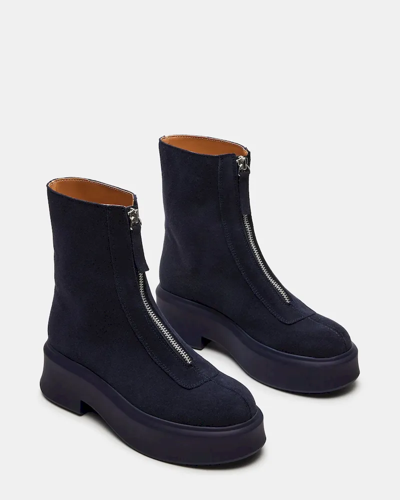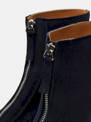 Experience style and comfort with the JONES ankle boot. The sleek design and front zipper detail add a touch of modernity to any outfit. Made with durable suede, these ankle booties are perfect for everyday wear.