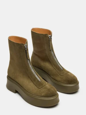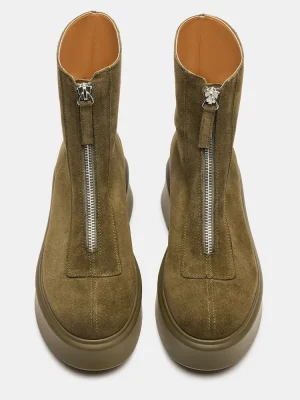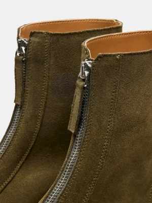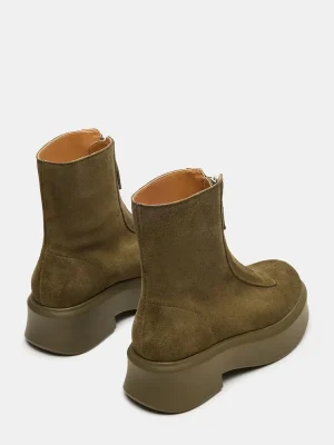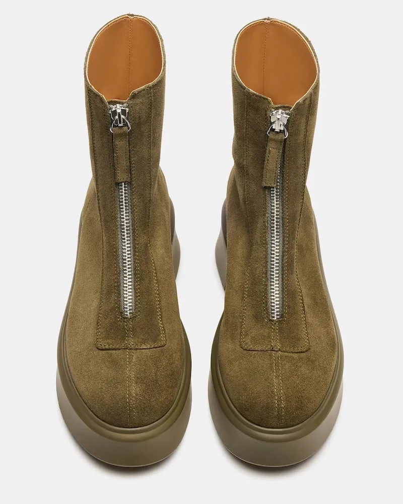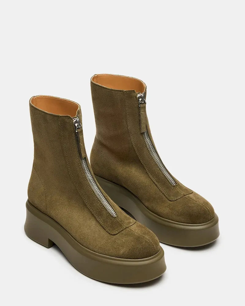 Experience style and comfort with the JONES ankle boot. The sleek design and front zipper detail add a touch of modernity to any outfit. Made with durable suede, these ankle booties are perfect for everyday wear.