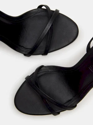 Enhance your outfit with these sleek JYPSEY heels. The strappy design and secure ankle strap provide a sophisticated touch, while the rounded toe and crisscross back add a unique flair. With a stunning stiletto heel, these heels are perfect for any formal or professional occasion.