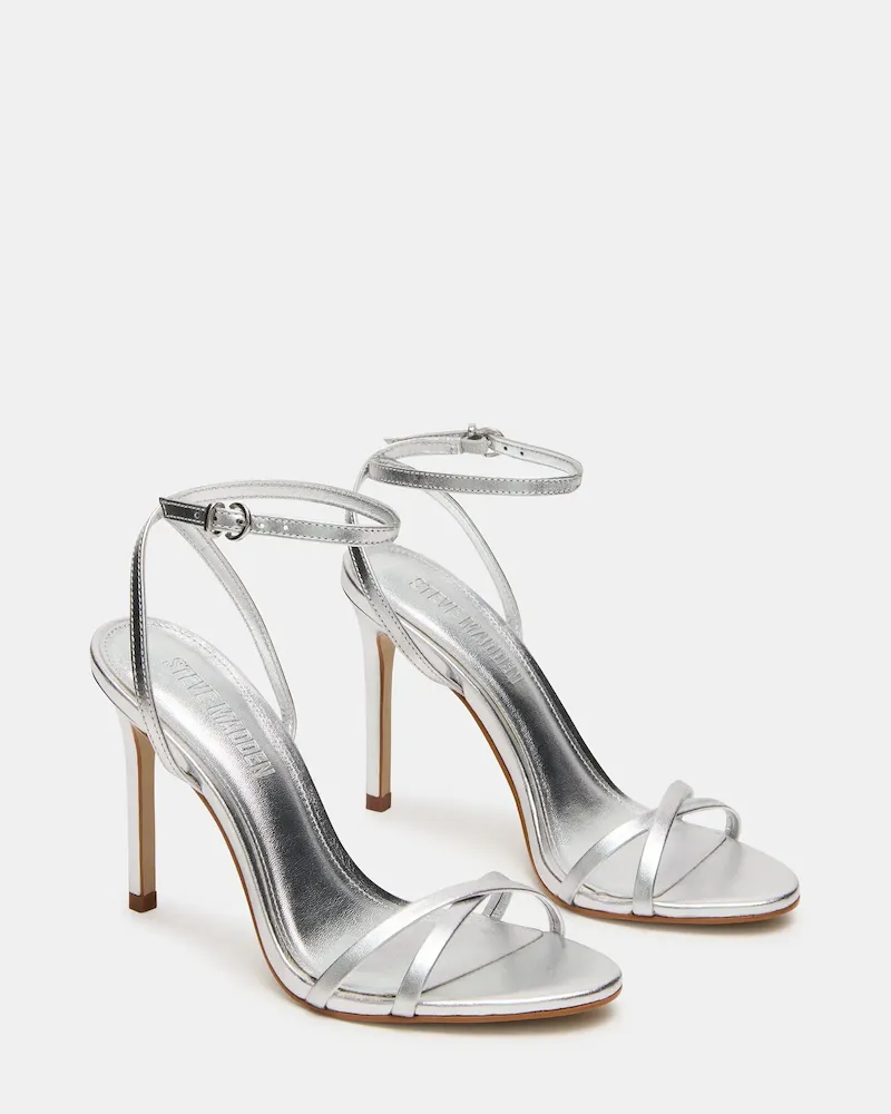 Enhance your outfit with these sleek JYPSEY heels. The strappy design and secure ankle strap provide a sophisticated touch, while the rounded toe and crisscross back add a unique flair. With a stunning stiletto heel, these heels are perfect for any formal or professional occasion.