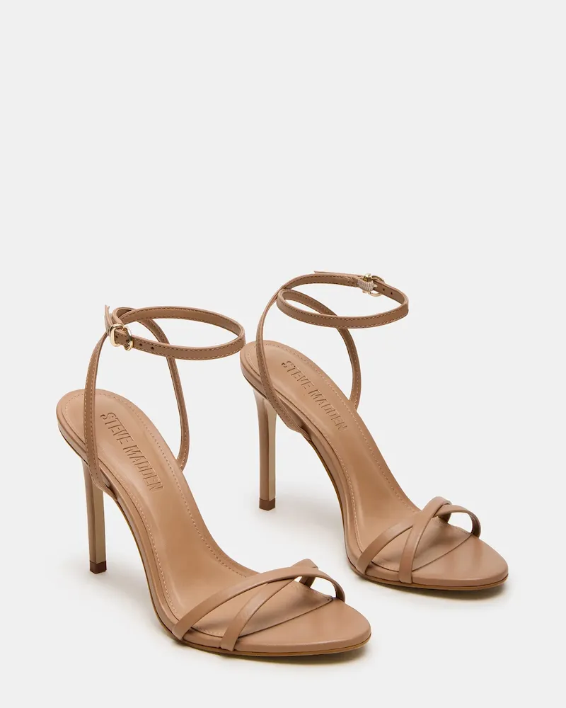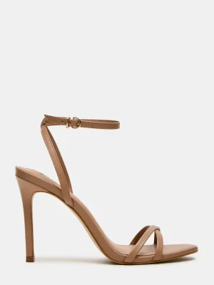 Enhance your outfit with these sleek JYPSEY heels. The strappy design and secure ankle strap provide a sophisticated touch, while the rounded toe and crisscross back add a unique flair. With a stunning stiletto heel, these heels are perfect for any formal or professional occasion.