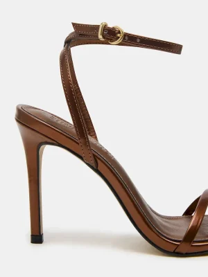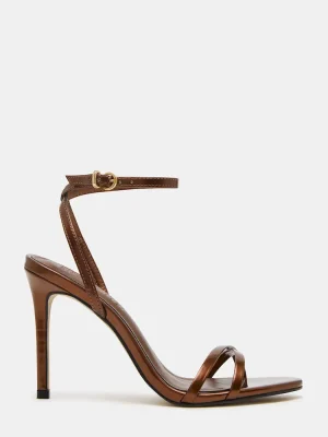 Enhance your outfit with these sleek JYPSEY heels. The strappy design and secure ankle strap provide a sophisticated touch, while the rounded toe and crisscross back add a unique flair. With a stunning stiletto heel, these heels are perfect for any formal or professional occasion.