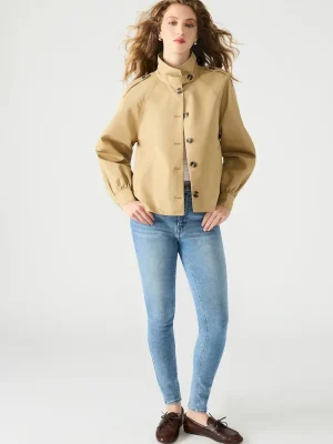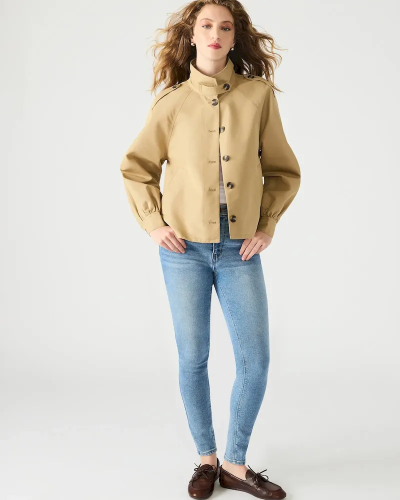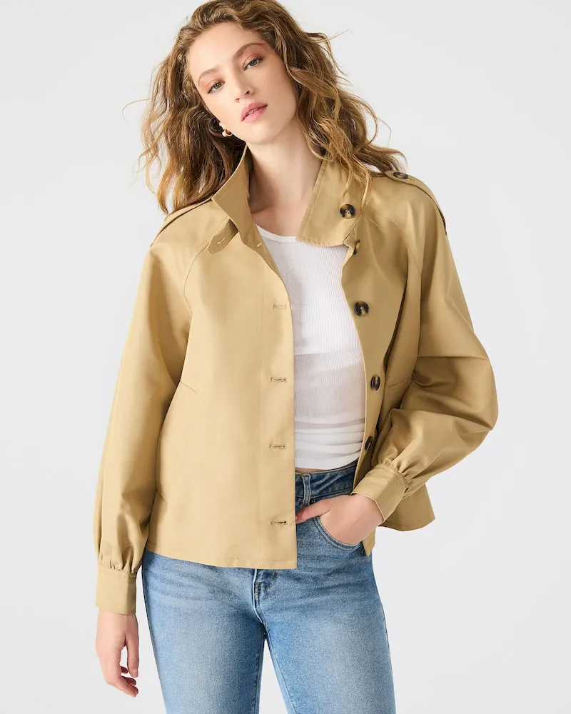 This KAYLEE jacket features a classic collared design with button-up front and long sleeves, offering a versatile layering option. Crafted for both style and function, it provides a polished look suitable for various occasions while ensuring comfortable wear throughout the day. Its tailored fit and durable fabric make it a reliable choice for transitional weather.