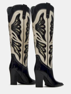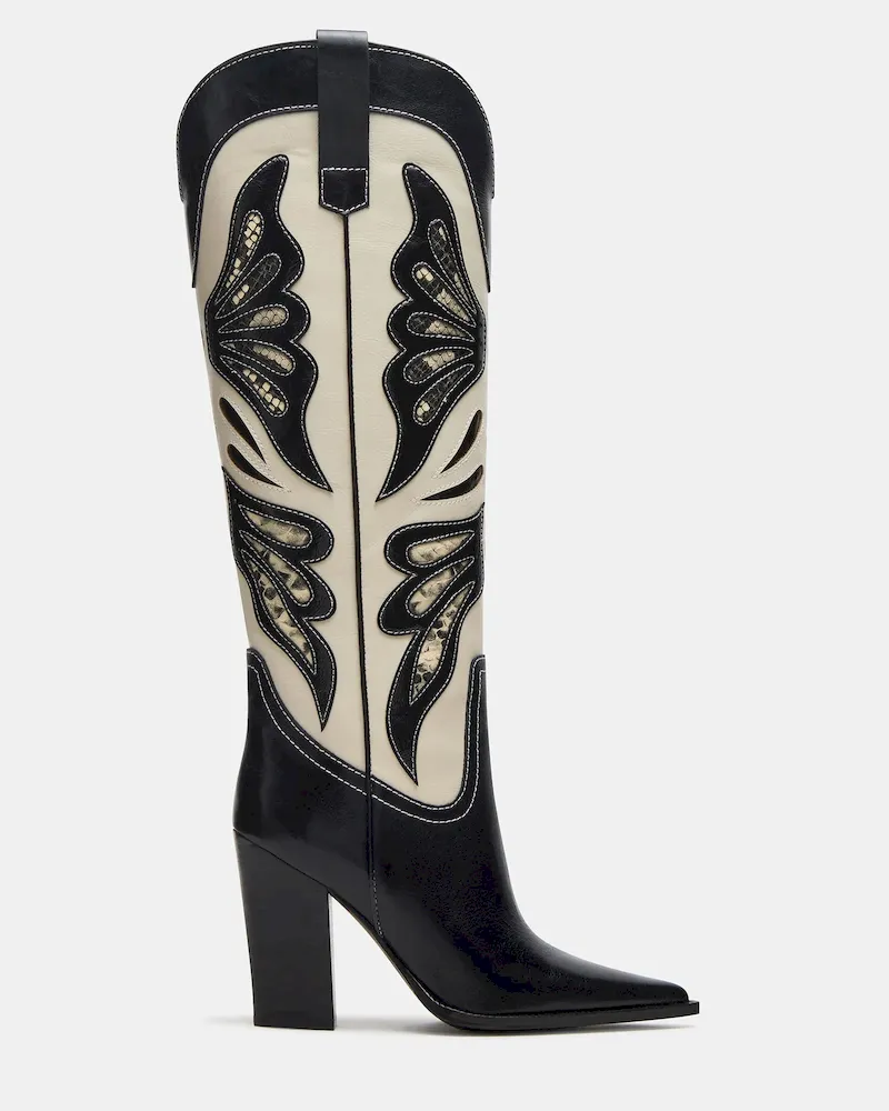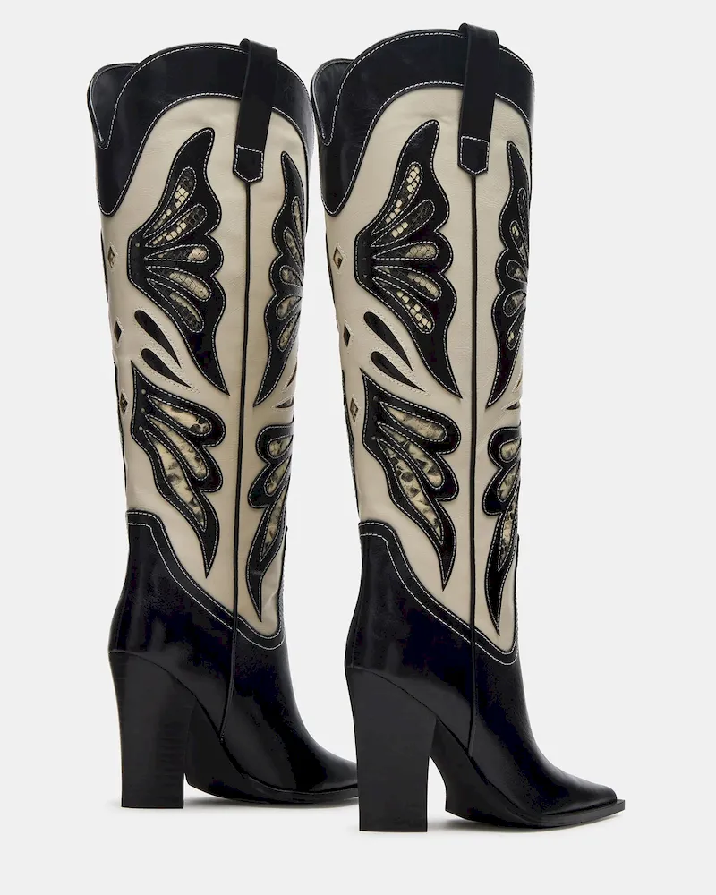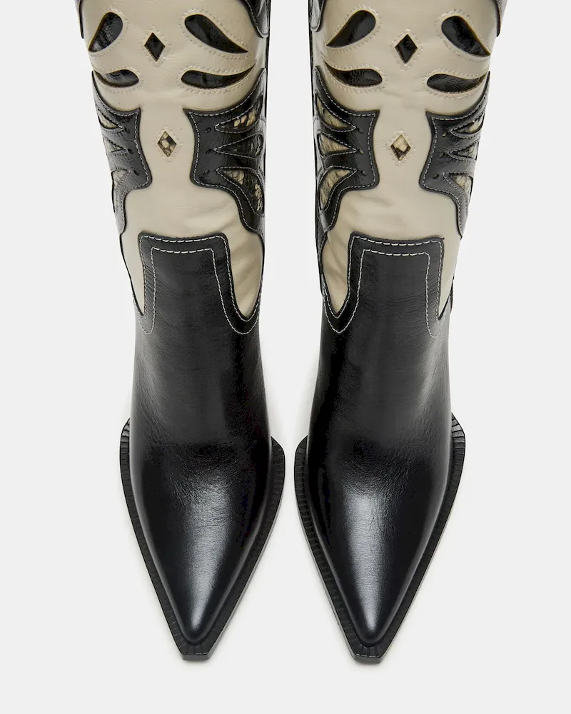 Step into the bold KAZ, a sophisticated pointed-toe Western boot featuring a stable block heel for all-day comfort. The striking, unique colorway offers versatile styling options while maintaining authentic Western design elements. Expertly crafted to provide both statement style and practical wearability.