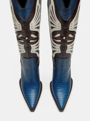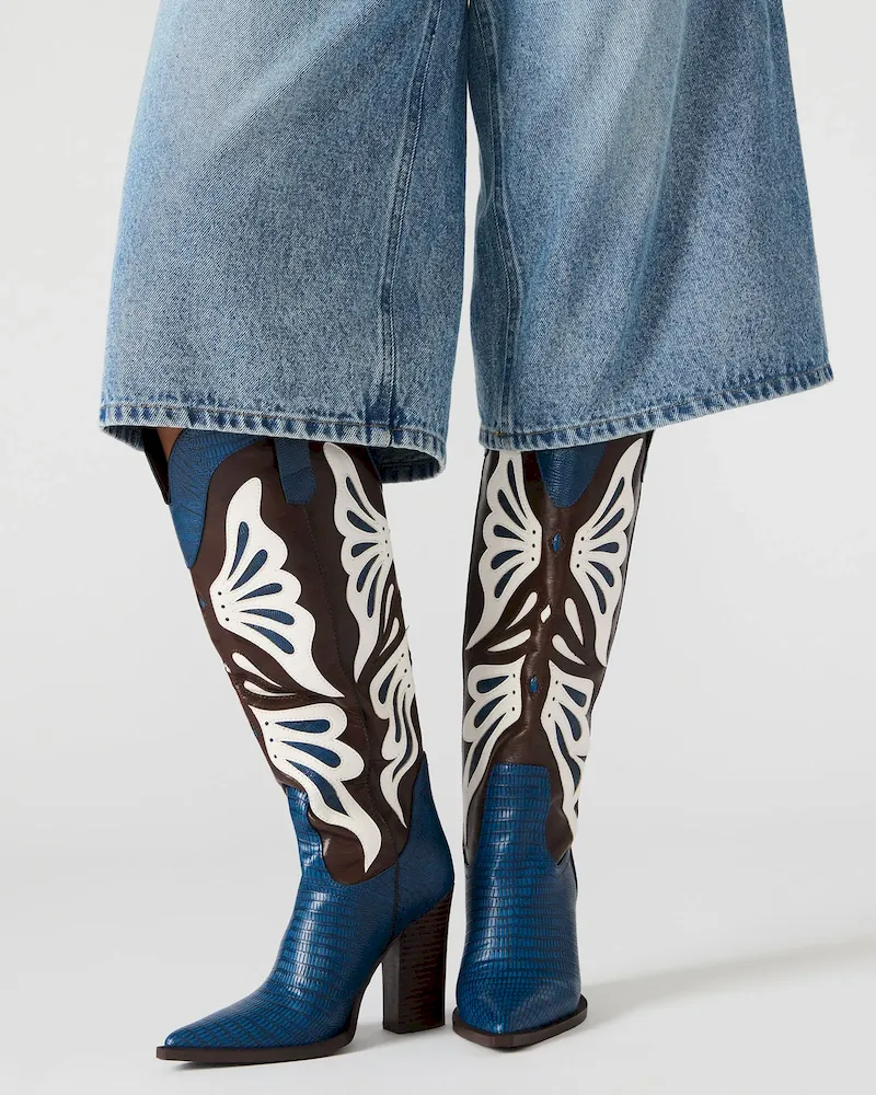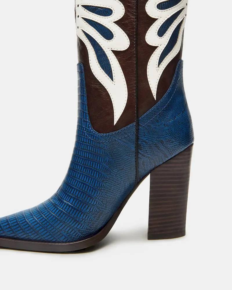 Step into the bold KAZ, a sophisticated pointed-toe Western boot featuring a stable block heel for all-day comfort. The striking, unique colorway offers versatile styling options while maintaining authentic Western design elements. Expertly crafted to provide both statement style and practical wearability.