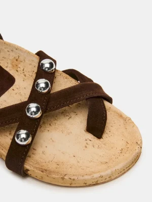 The KELSO sandal features a strappy design adorned with subtle studs, combining edgy style with refined craftsmanship. Its flatform sole offers balanced height and comfort, making it ideal for all-day wear. Perfect for elevating casual or dressy looks, this sandal blends contemporary fashion with practical support.