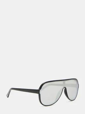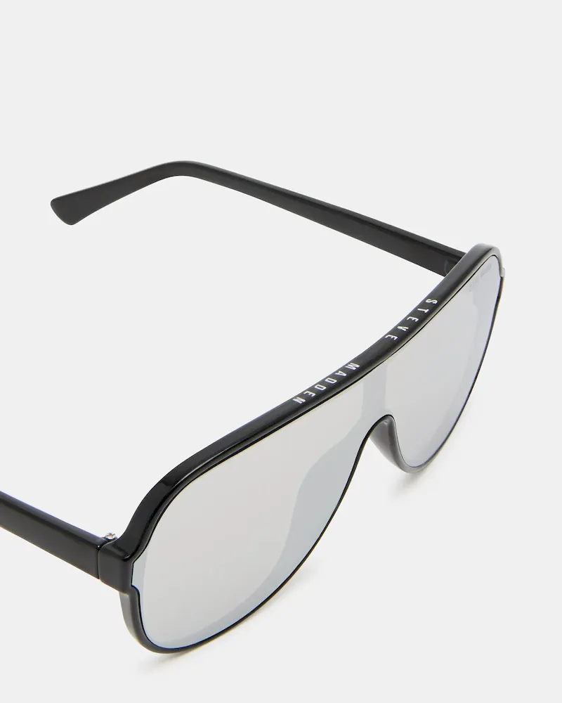 Enjoy crystal clear vision and stylish protection with our KERBIE SUNGLASSES BLACK. The opaque frame and silver flash lens adds a touch of glam to the sleek shield shape design. Make these sunglasses your go-to accessory for any occasion.