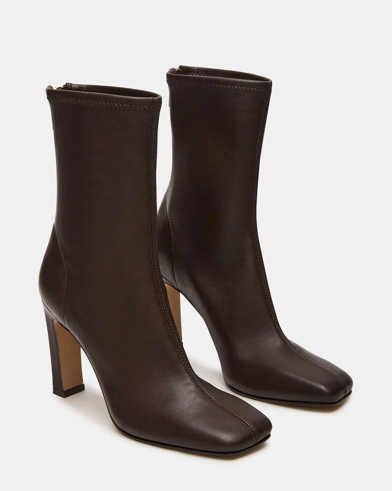The KHELAN ankle boot features a sophisticated, heeled square-toe design, combining modern style with timeless elegance. Crafted for both comfort and durability, this bootie elevates any outfit with its sleek silhouette and refined finish, making it a versatile addition to your footwear collection. Ideal for professional and casual settings, it offers a confident stride and lasting wear.