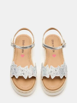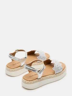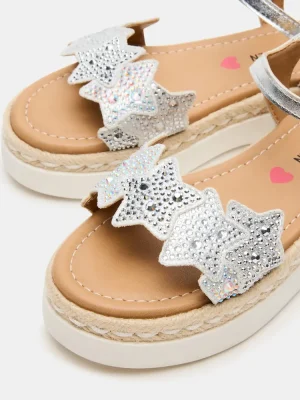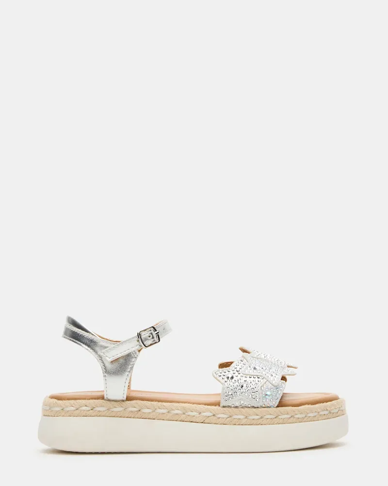 Elevate your child’s style with our kids’ GEMS platform espadrille sandals. The secure ankle strap and rounded toe provide comfort and stability, while the star-shaped strap with rhinestone embellishments adds a touch of glamour. Perfect for any occasion, these sandals are a must-have for any fashion-forward kid.