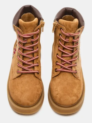 These kids’ lace-up ankle boots offer durable support and style for everyday wear. Designed with an easy-to-tie lace closure, the ankle-high silhouette ensures a secure fit while allowing flexibility for active movement. Crafted in a versatile color, they complement various outfits and provide reliable comfort for growing feet. Ideal for both casual and outdoor activities, these boots combine practicality with a timeless look.